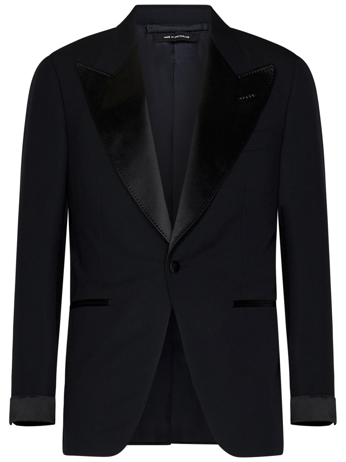 - Blazer: Monopetto, chiusura frontale a un bottone; Rever a lancia in raso nero; Maniche lunghe, spalle strutturate, polsini a cinque bottoni, risvolto in raso nero sul fondo manica; Tasche frontali a filetto con piping in raso nero, taschino sul petto; Spacco centrale sul retro; Bottoni rivestiti in raso tono su tono; Foderato