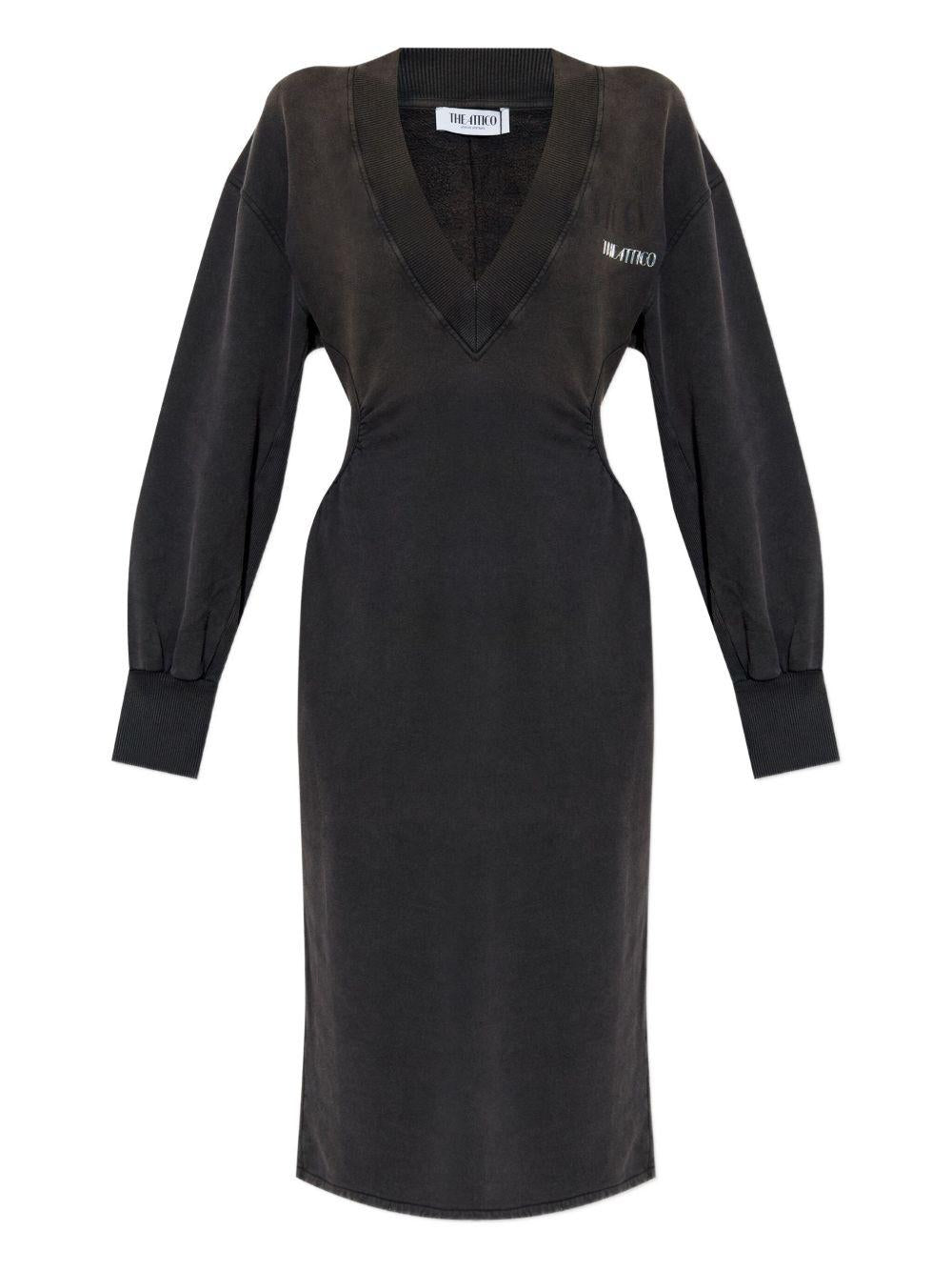 - Profondo scollo a V a costine; maniche lunghe, spalle basse, polsini a costine