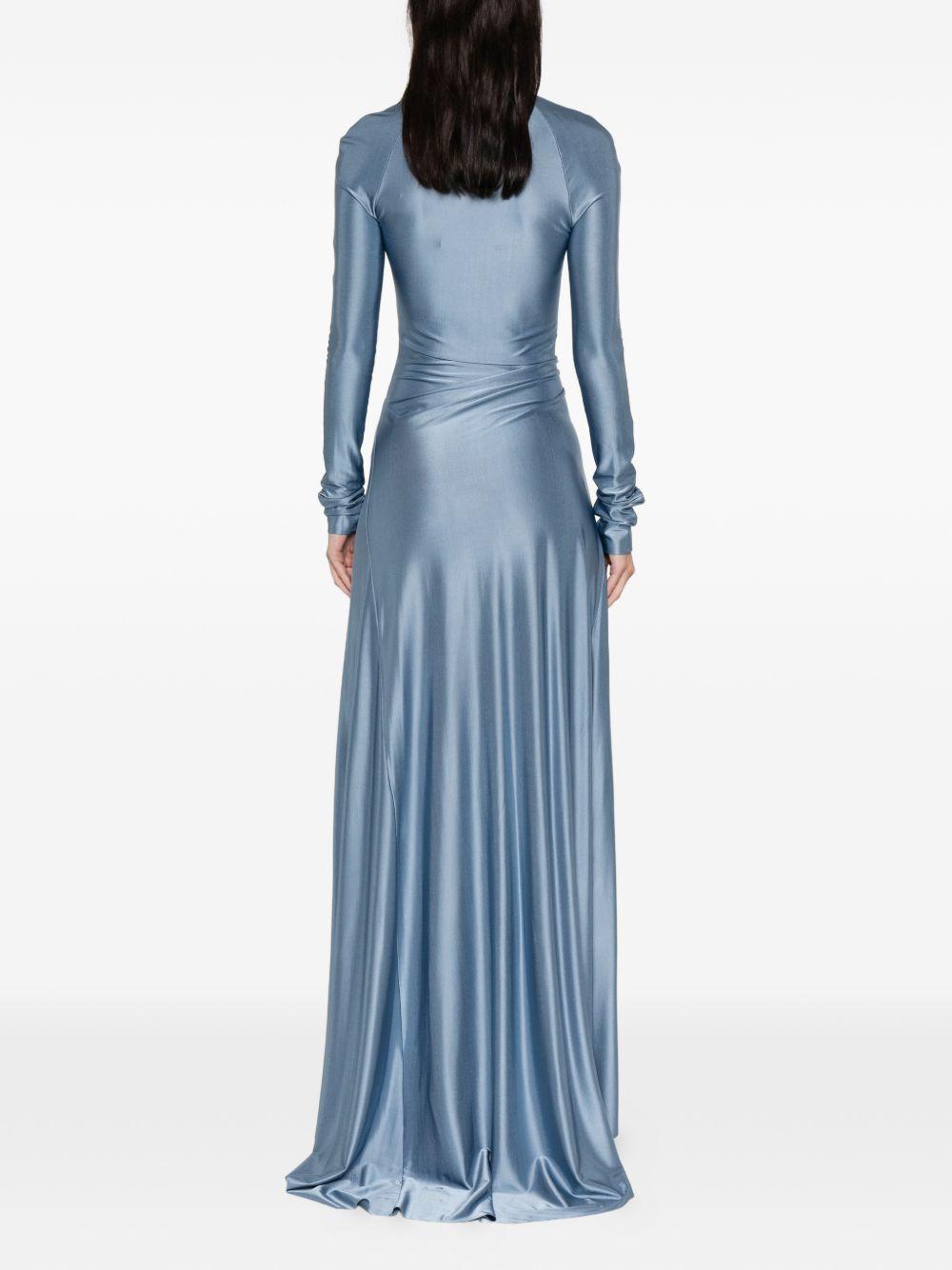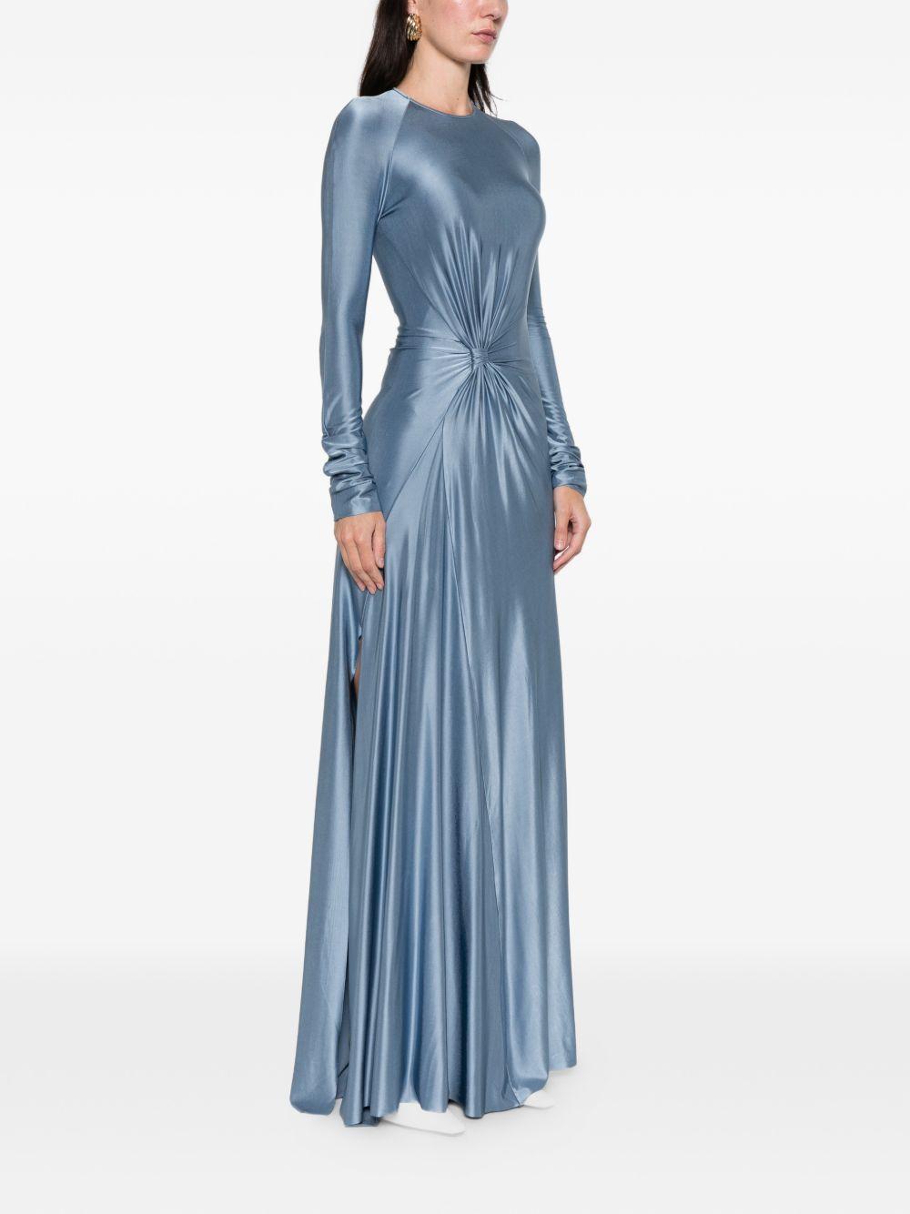- Dettaglio nodo laterale in vita sul davanti; drappeggi sul davanti