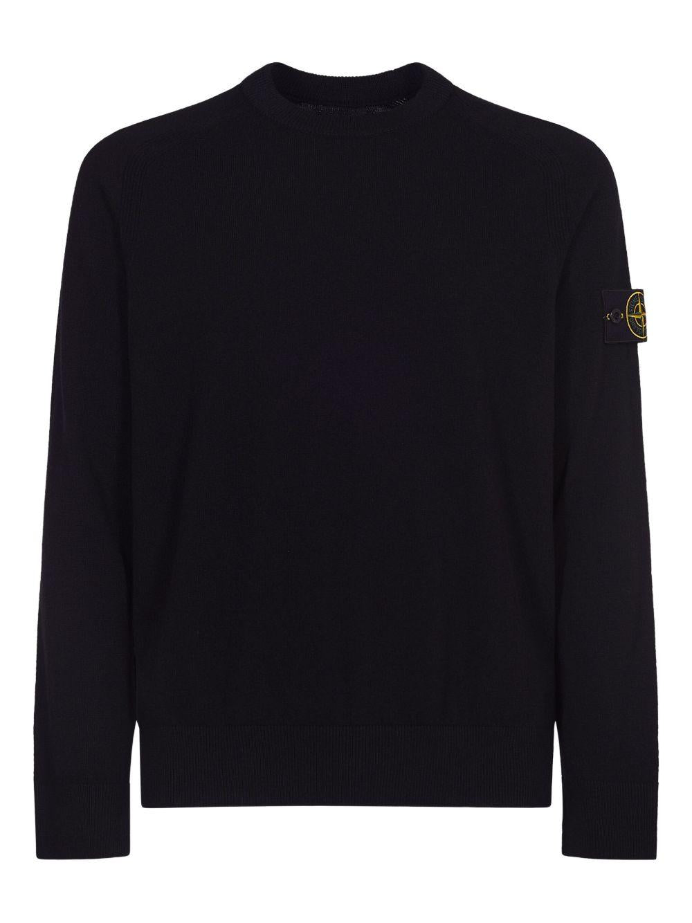 - Girocollo a costine; maniche lunghe raglan con fasce a costine