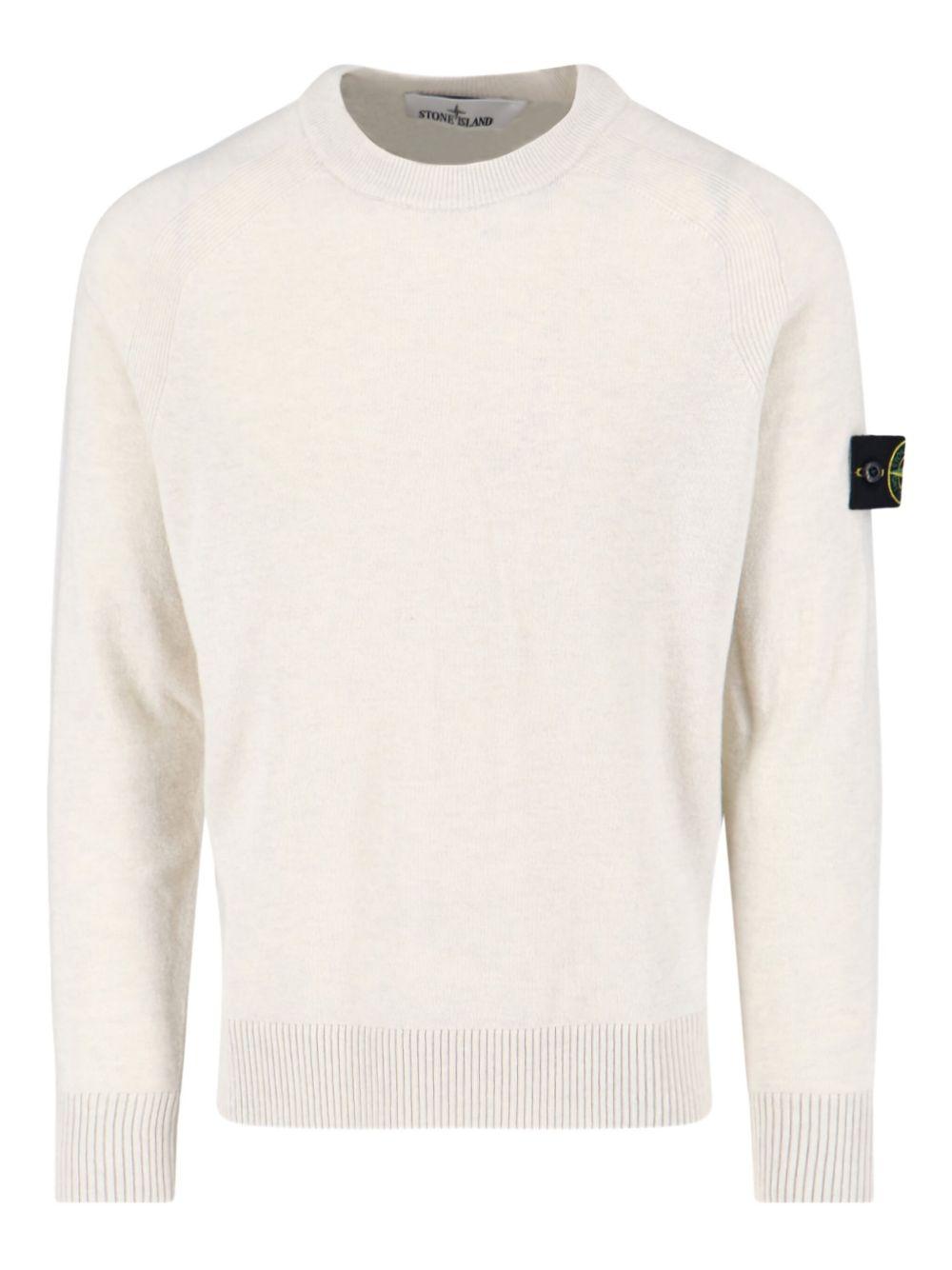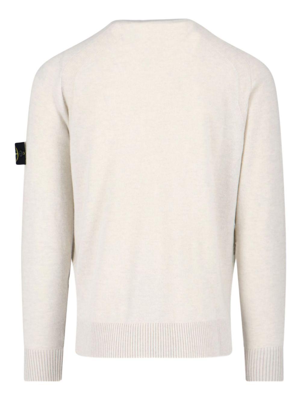 - Girocollo a costine; maniche lunghe raglan con fasce a costine