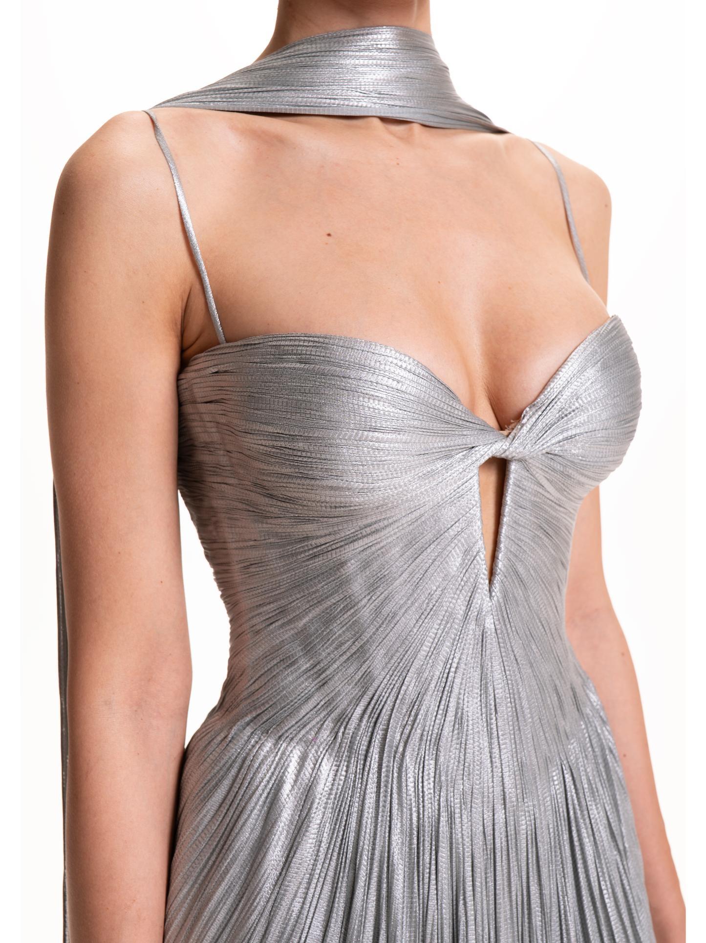 - Scollatura a cuore con drappeggio intrecciato sul seno
