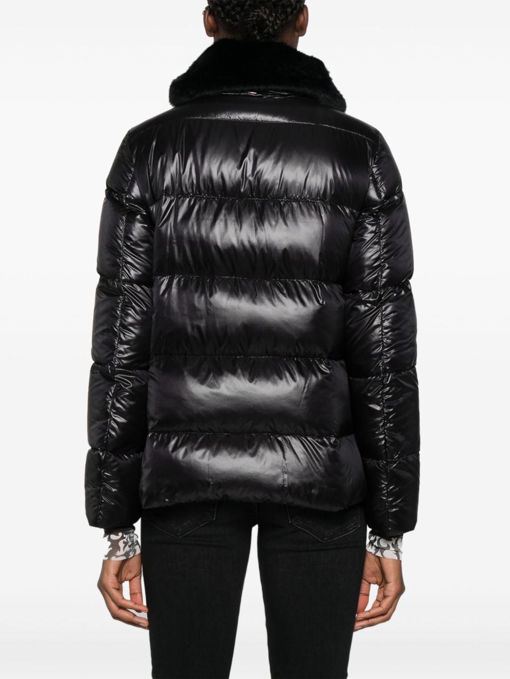 - Collo ampio in ecopelliccia effetto castorino tono su tono; maniche lunghe
