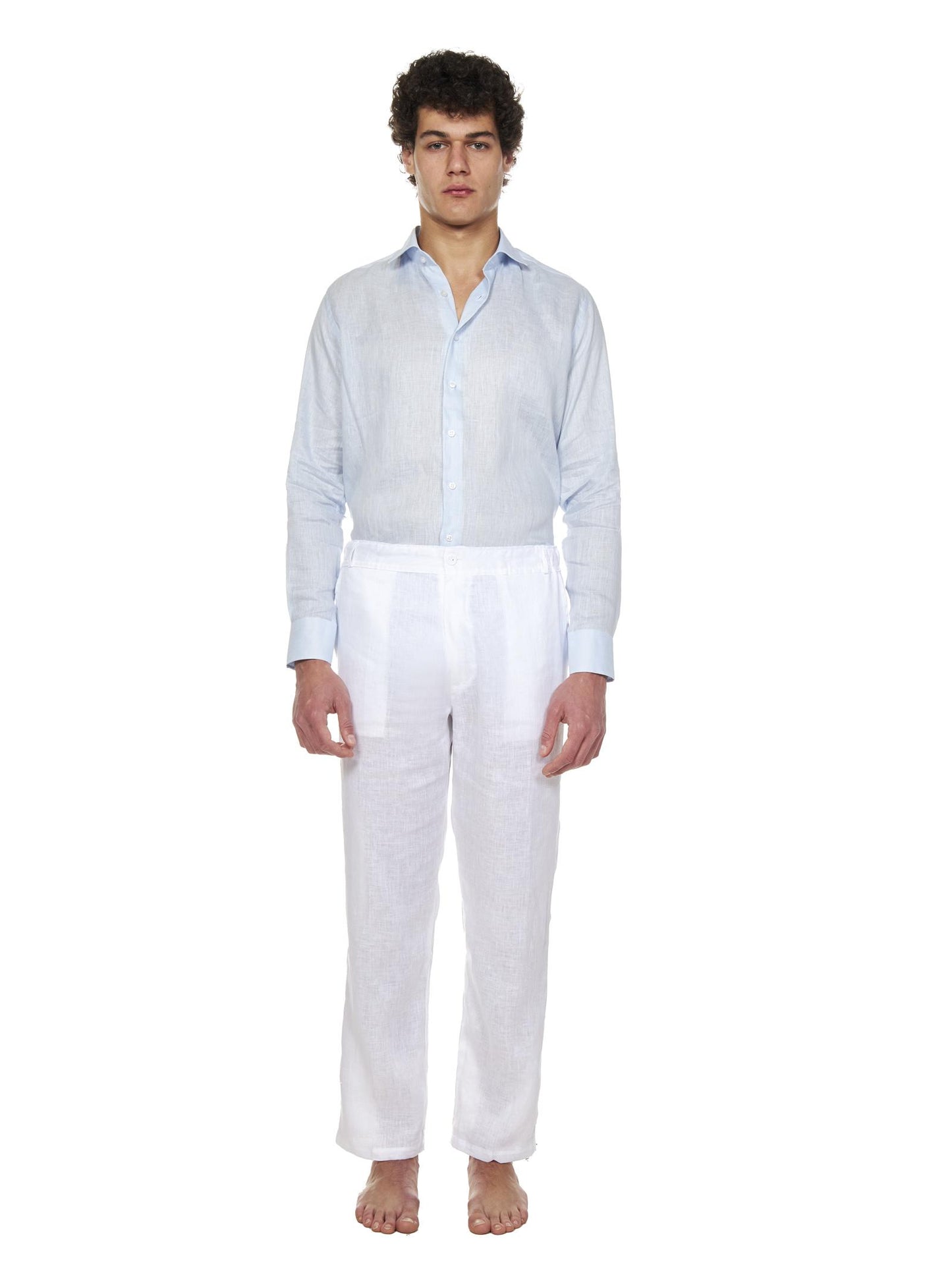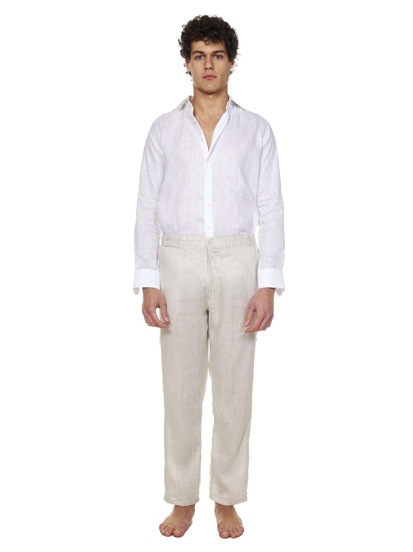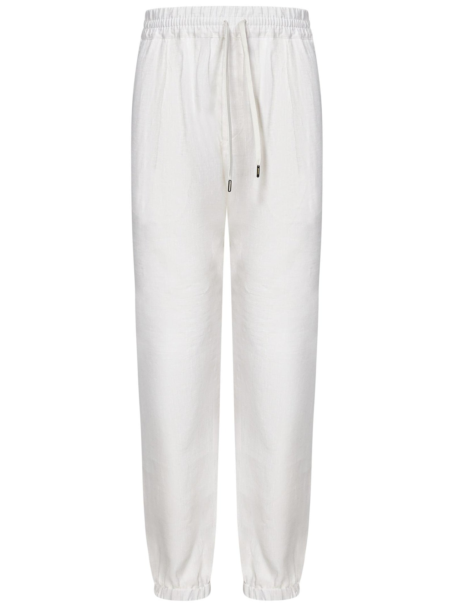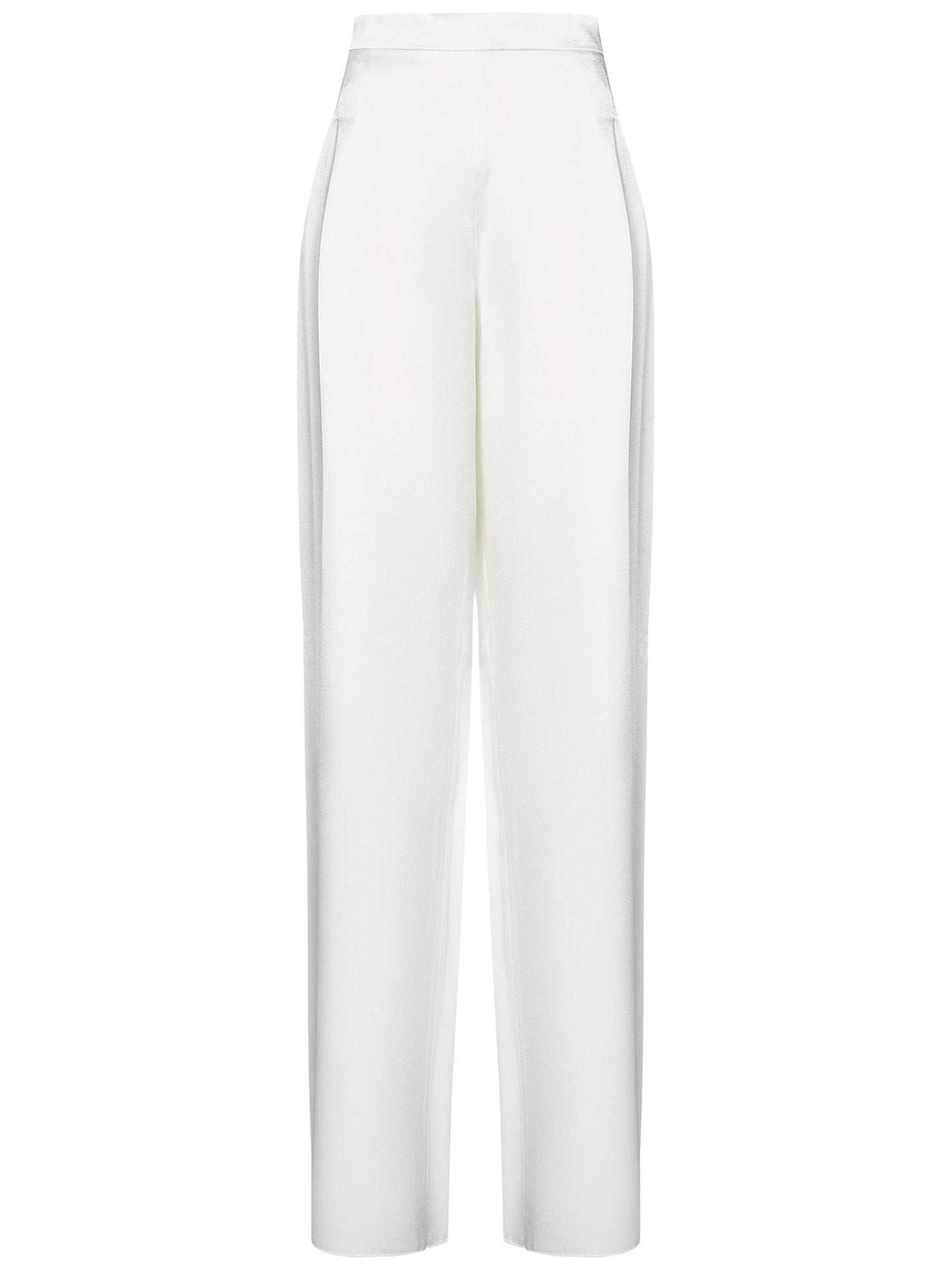 Flowing trousers in white envers satin with wide leg cut and pleats on the front.