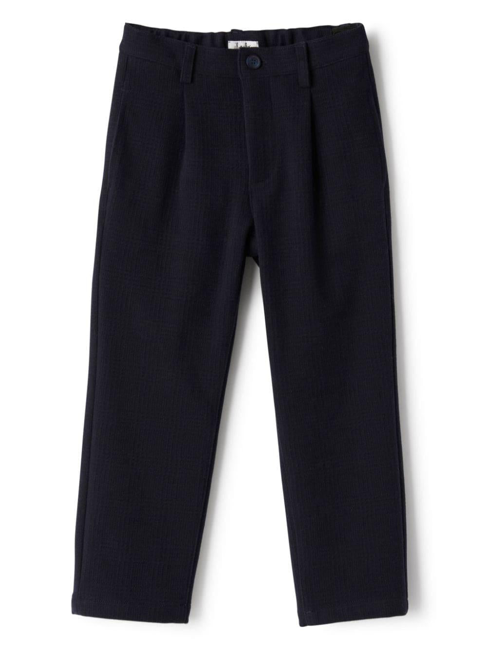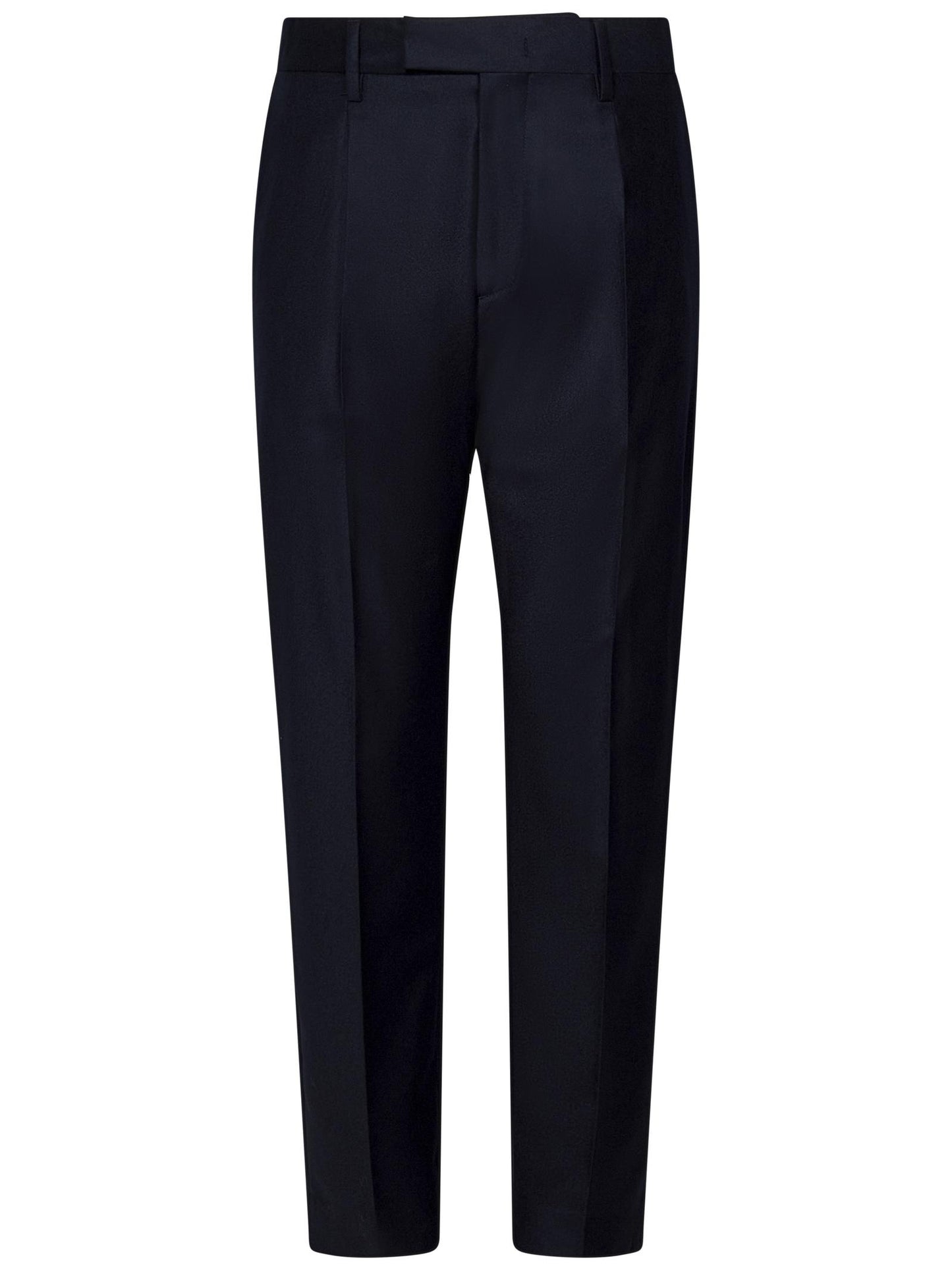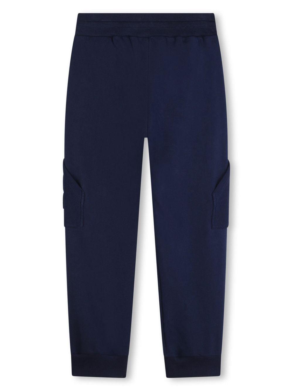 LU-JEF cargo trousers in navy virgin wool with drawstring waist.