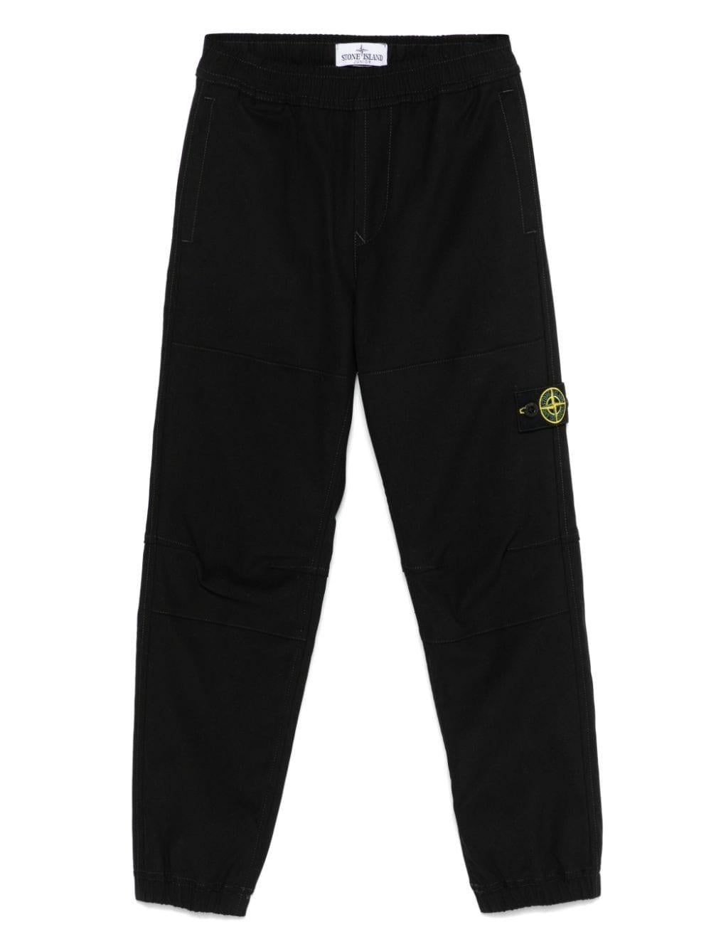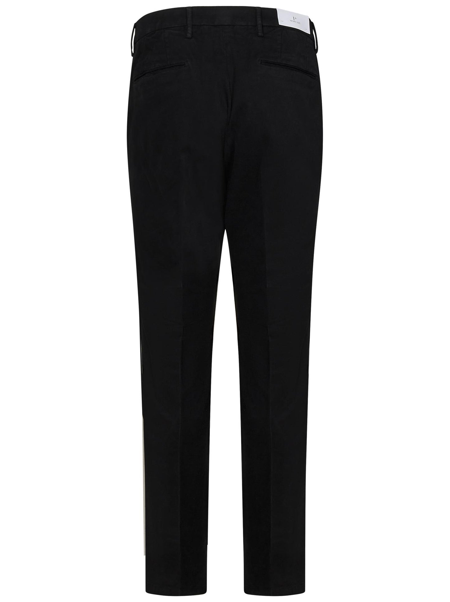 Slim fit chino trousers in black stretch cotton with ironed centre crease.