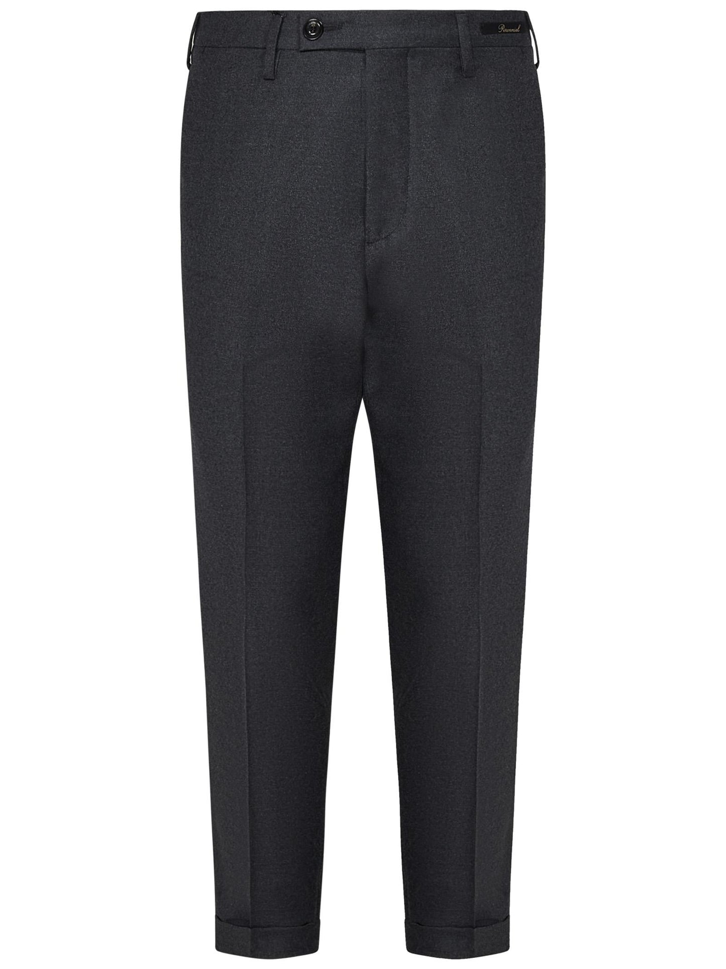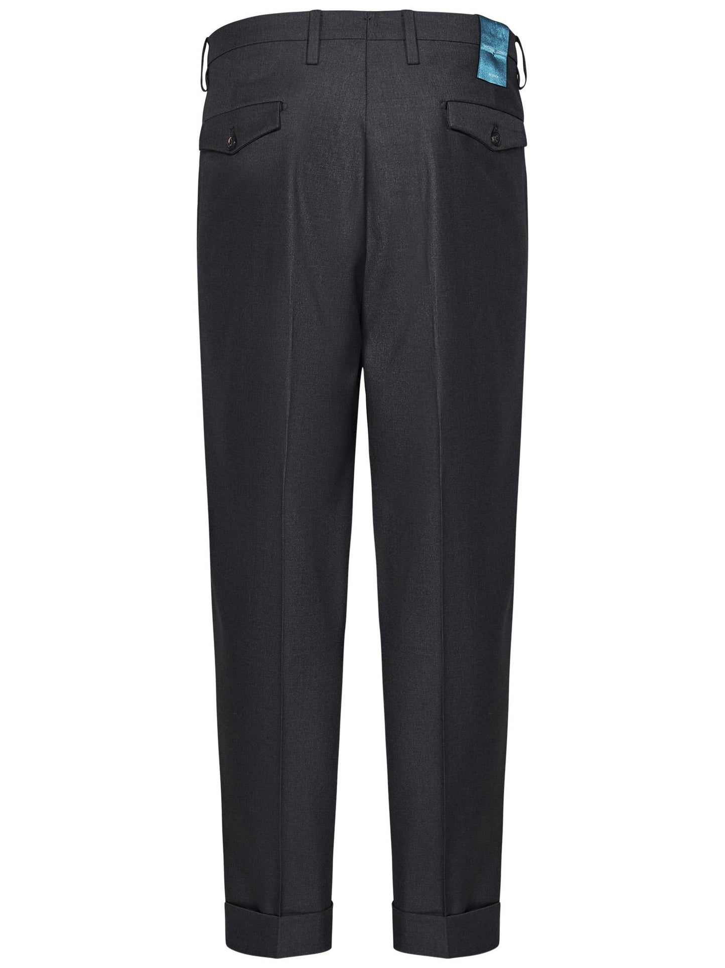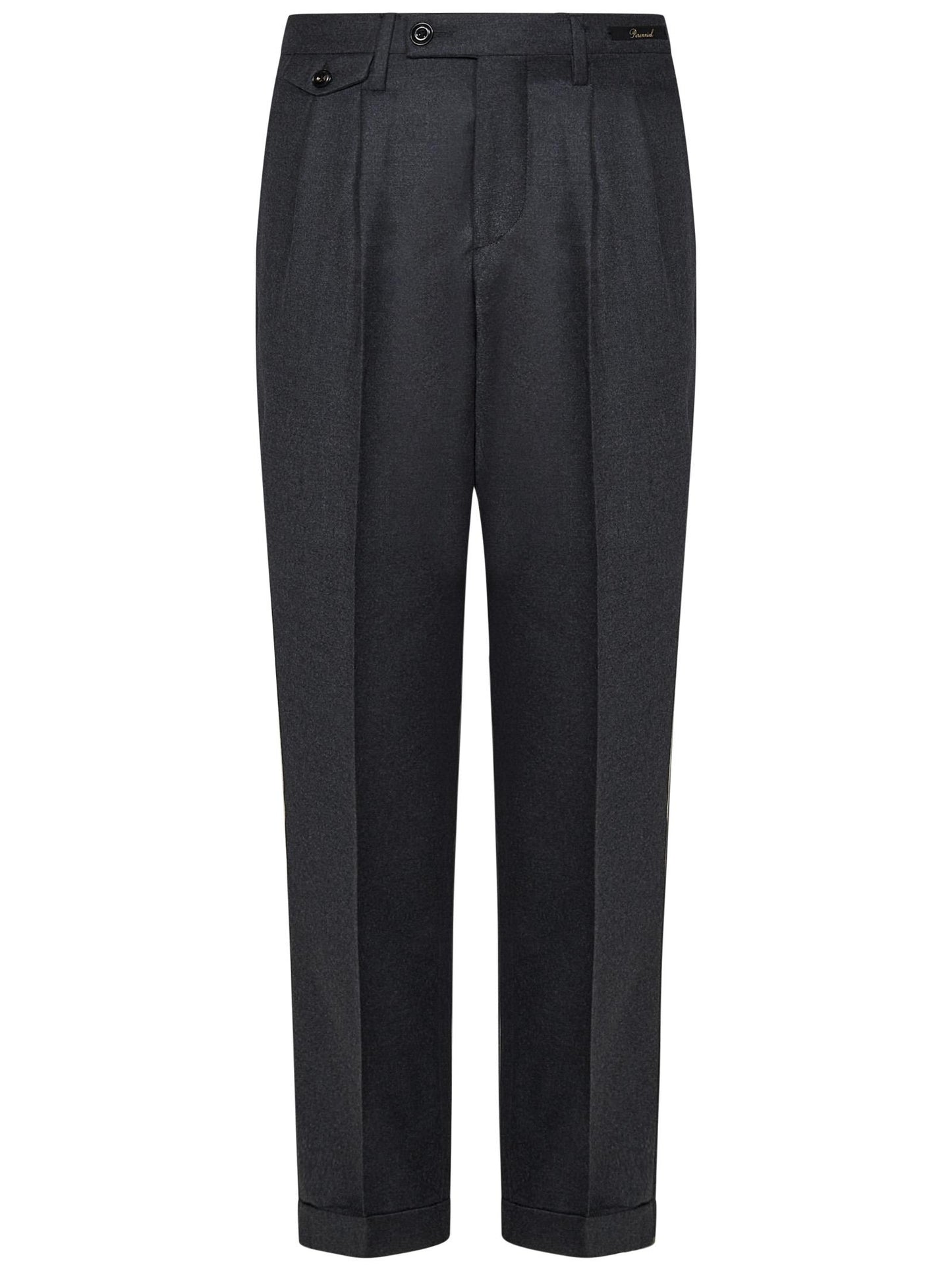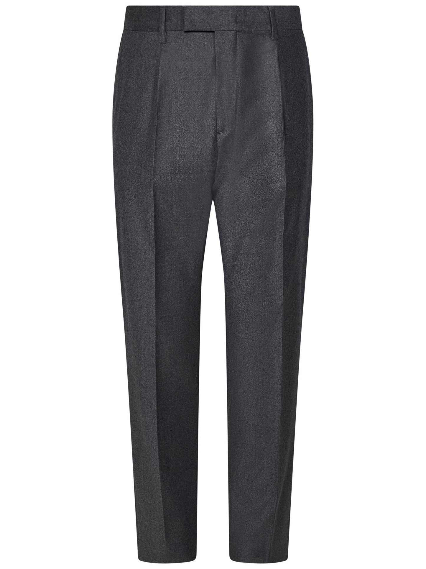 MC trousers in gray stretch viscose blend with double pleats and turn-up at the hem.