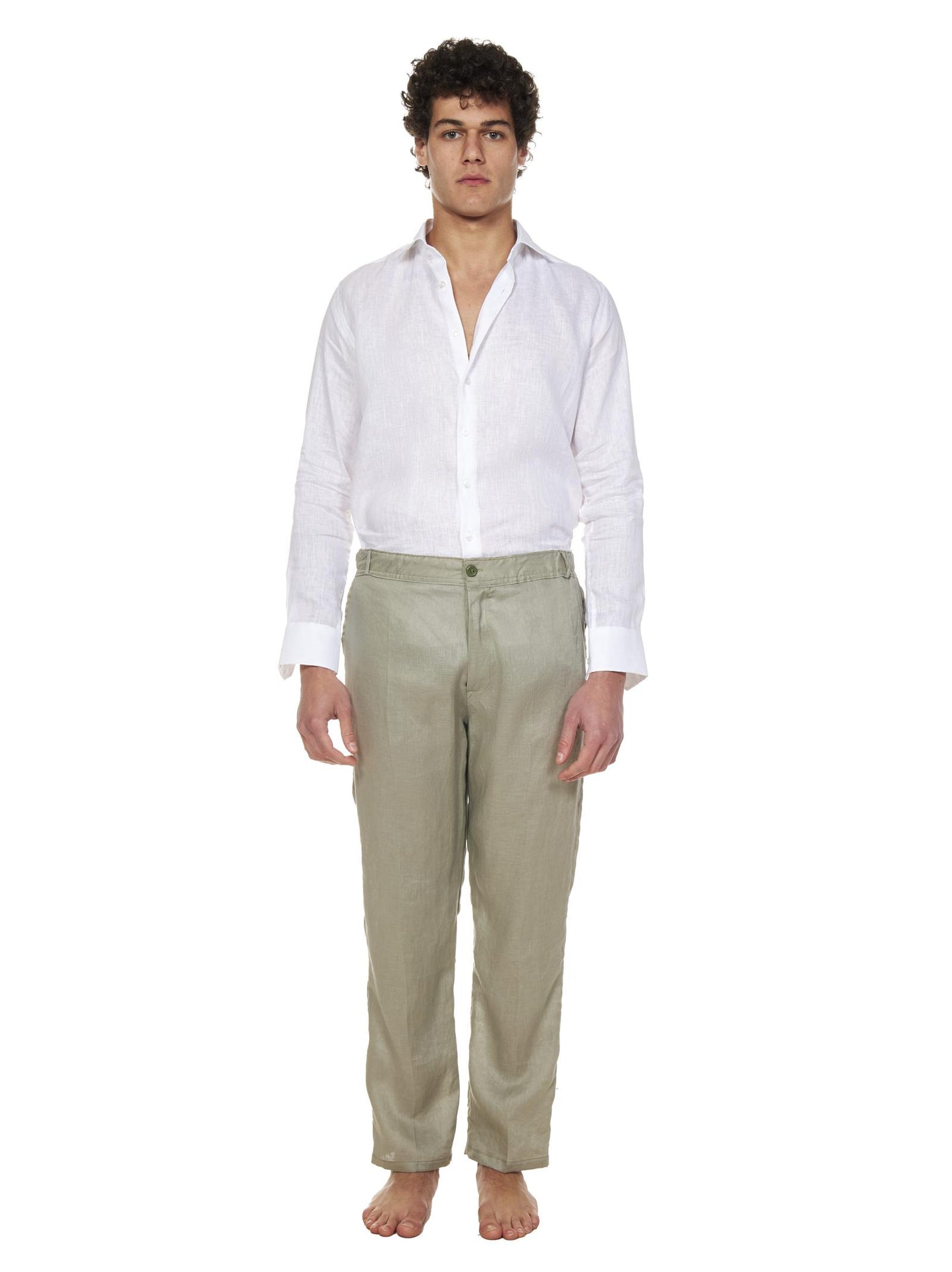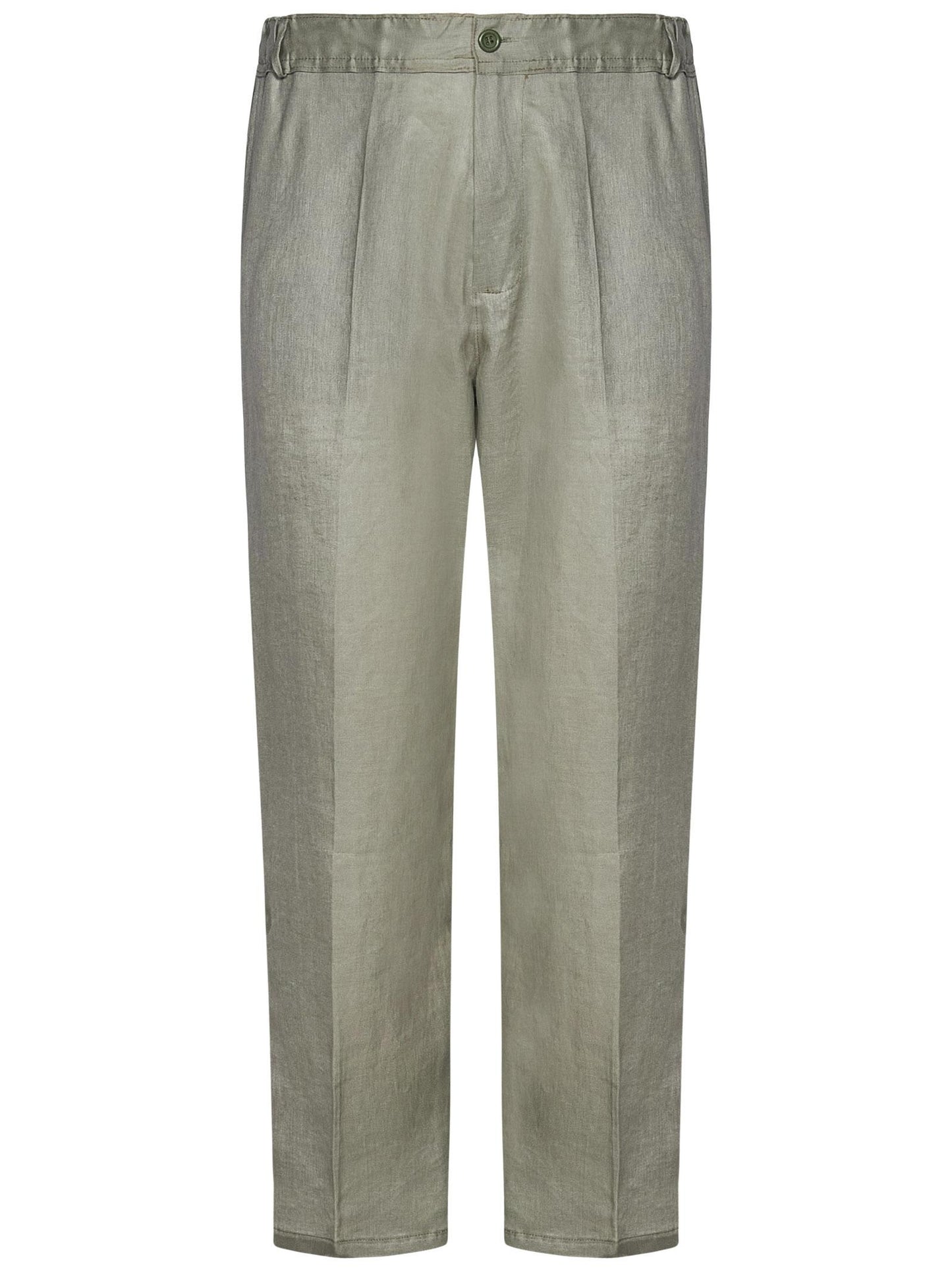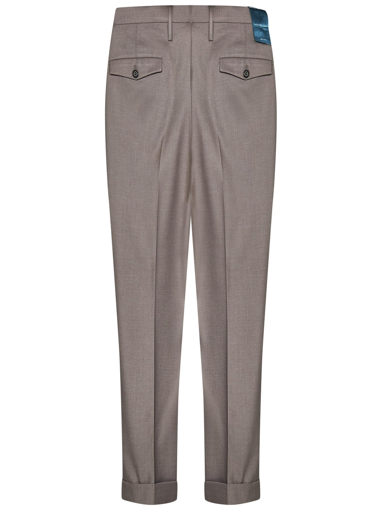 Mud-colored MC trousers in stretch viscose blend with double pleat and turn-up at the bottom.