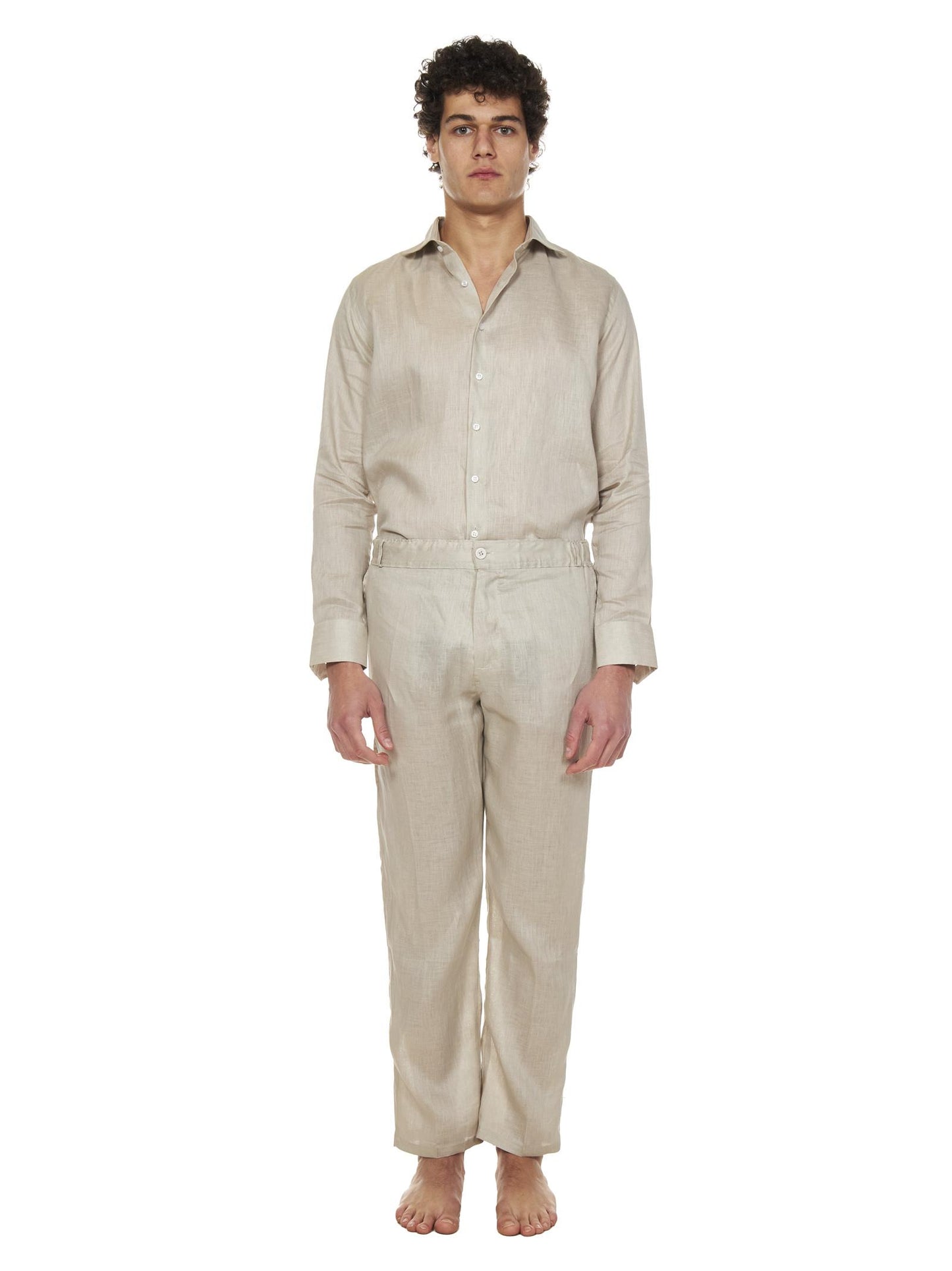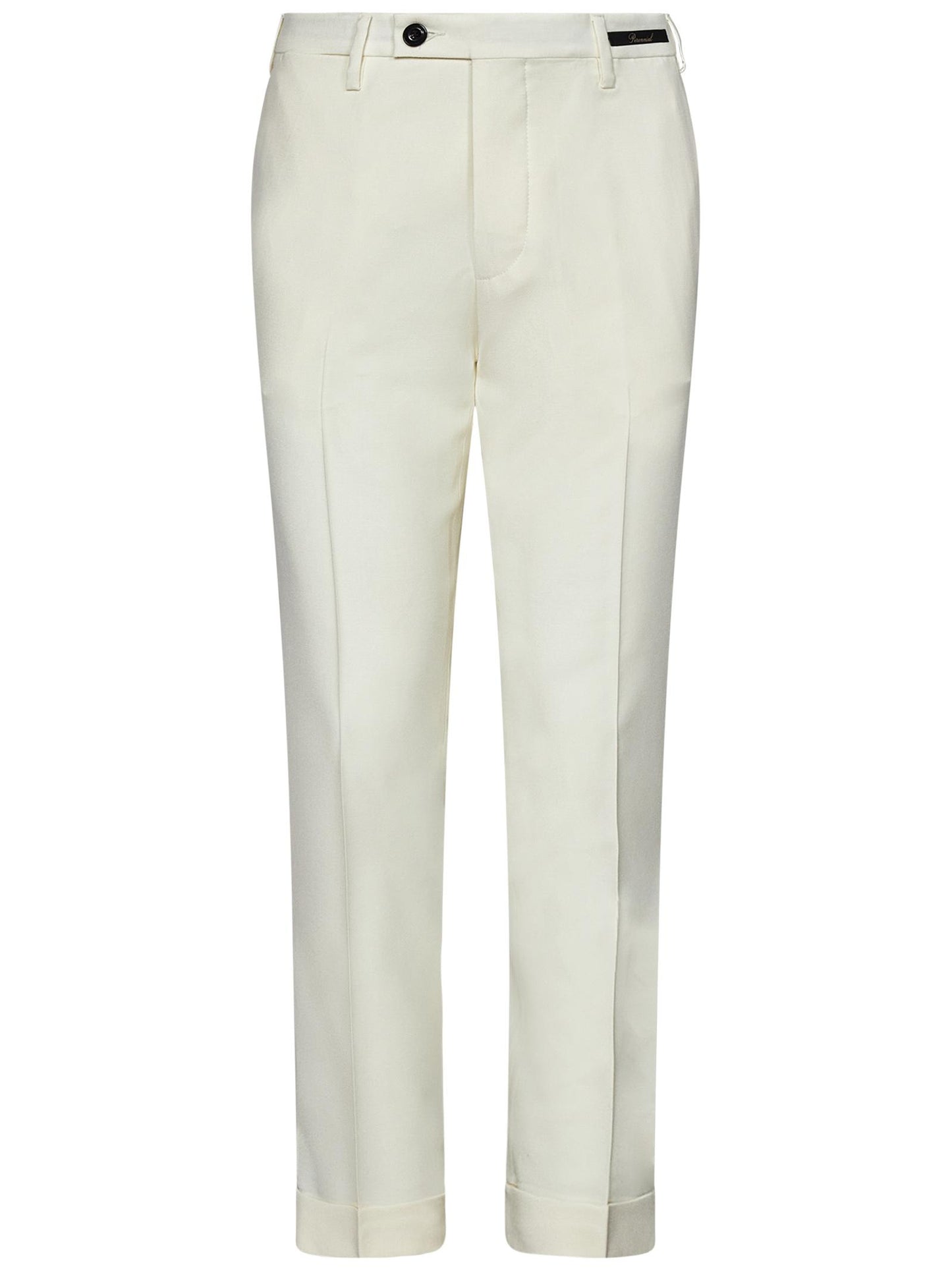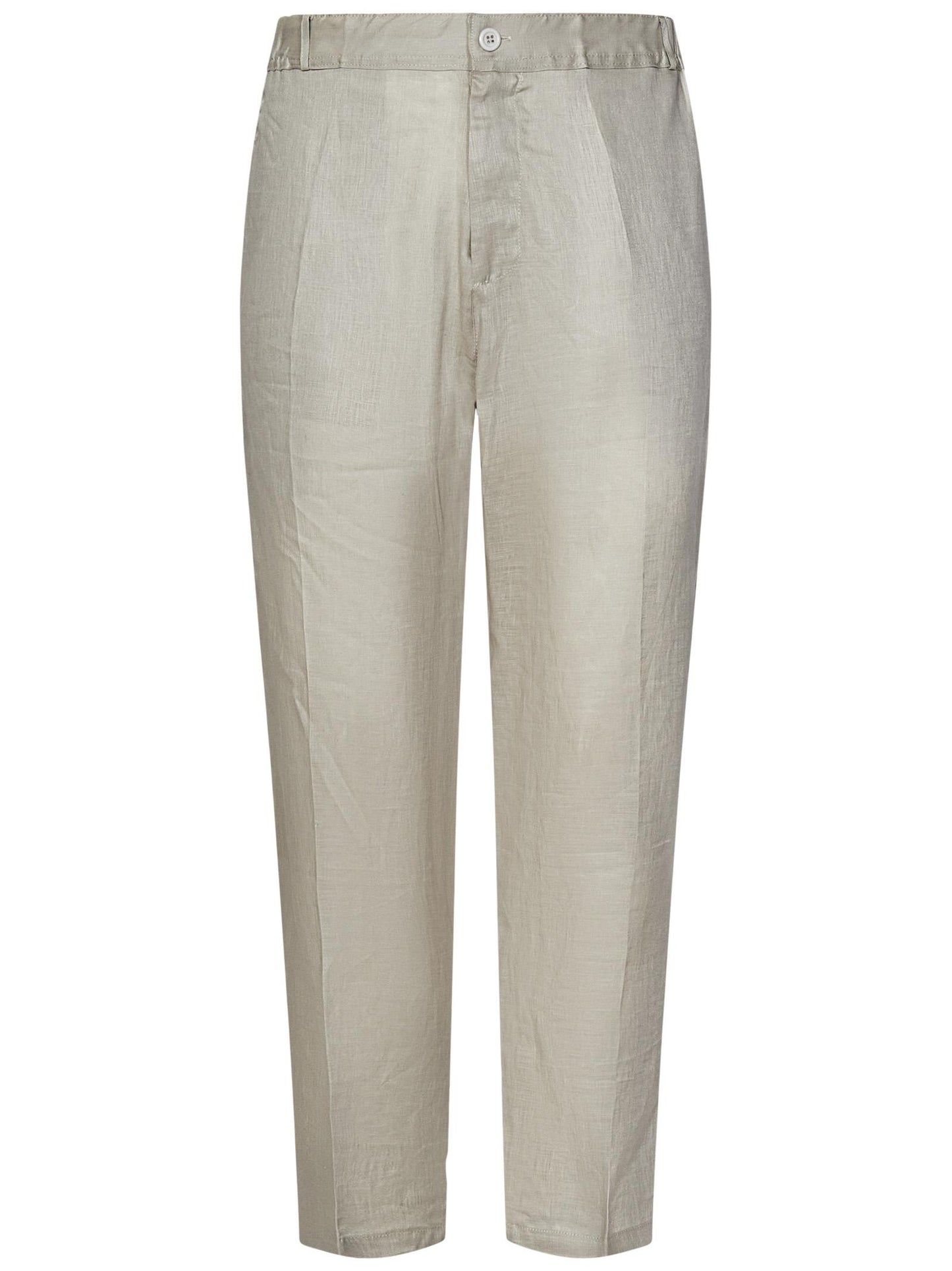 Mud-colored MC trousers in stretch viscose blend with double pleat and turn-up at the bottom.