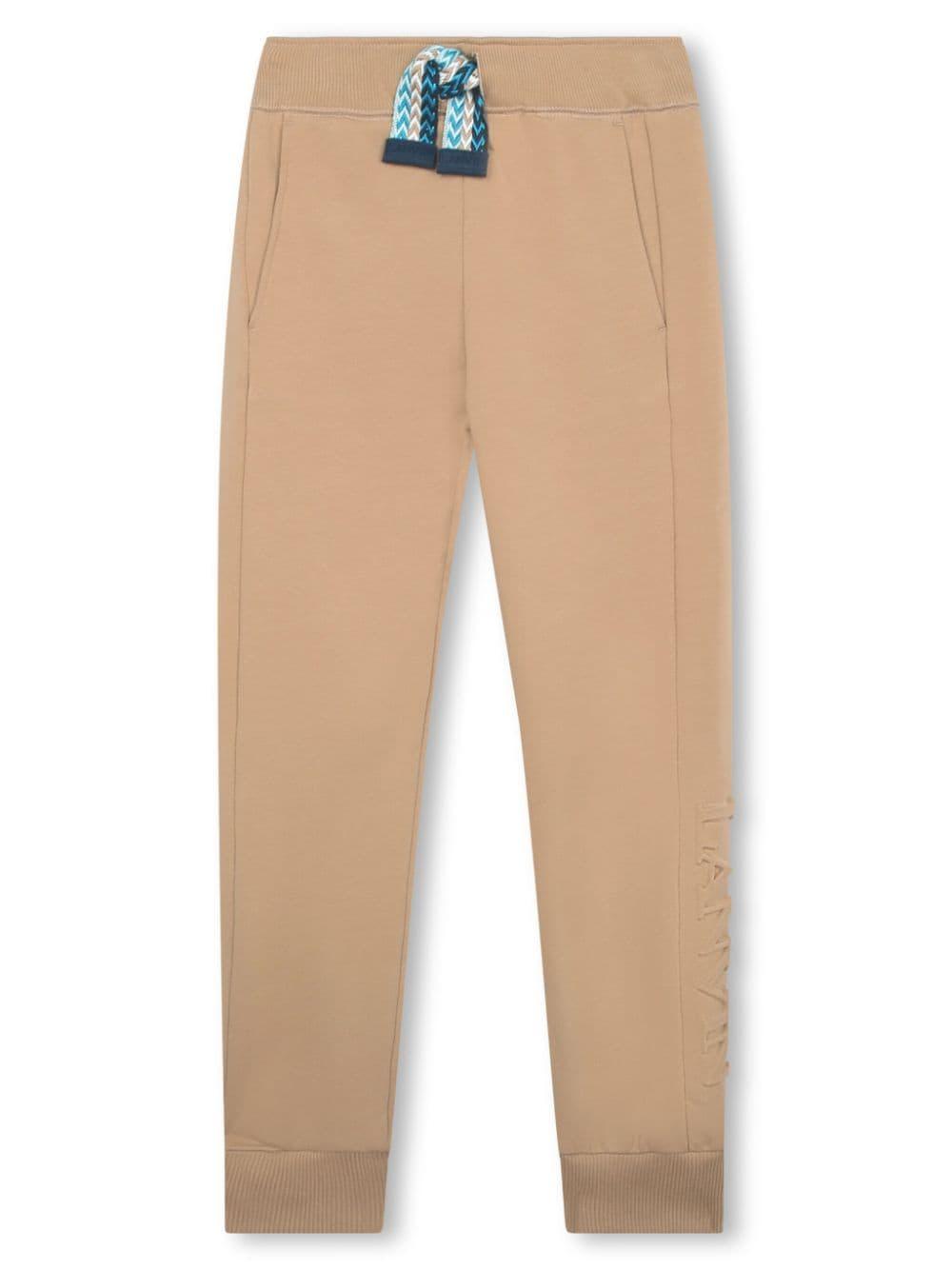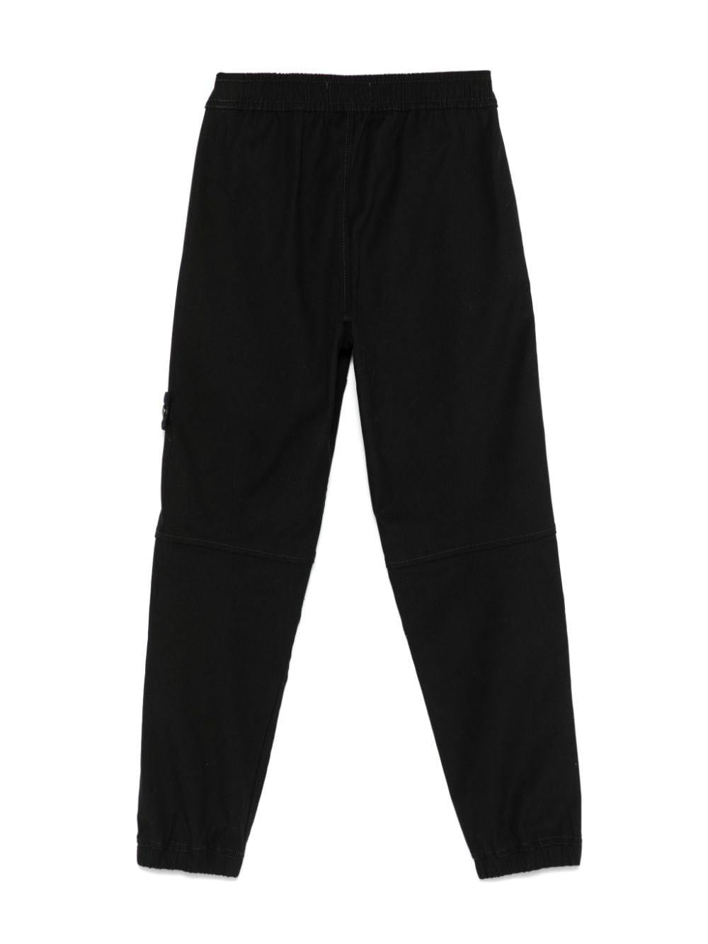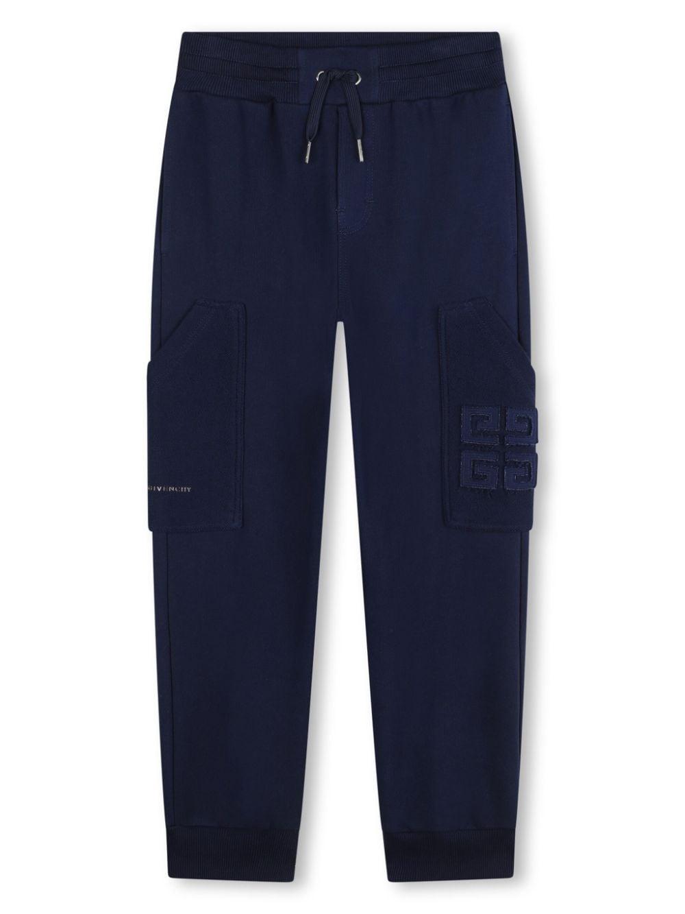 Pantaloni joggers in cotone azzurro tinto in capo con patch logo sul davanti.