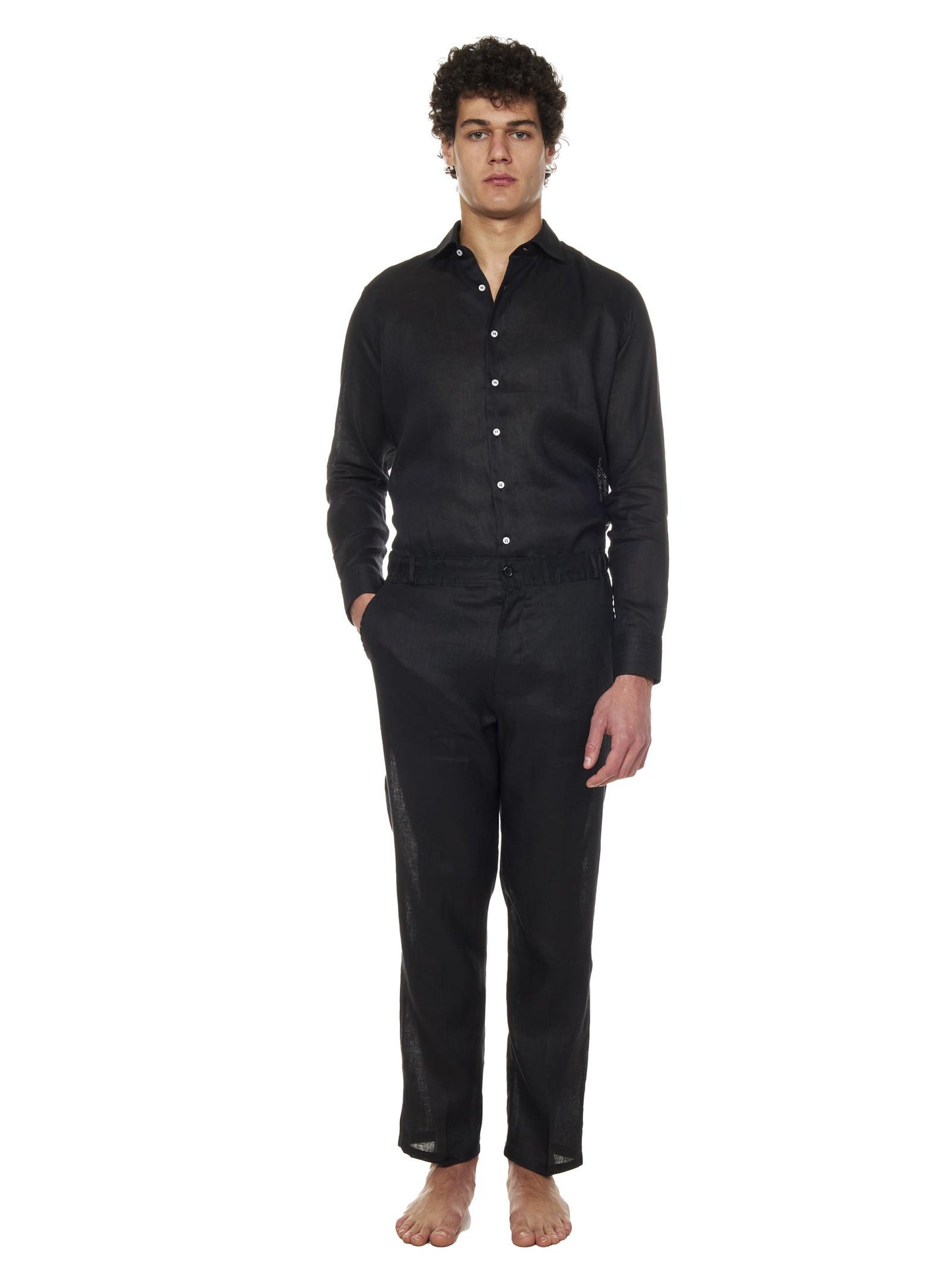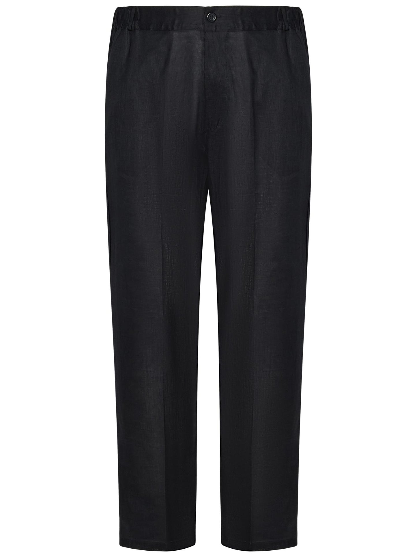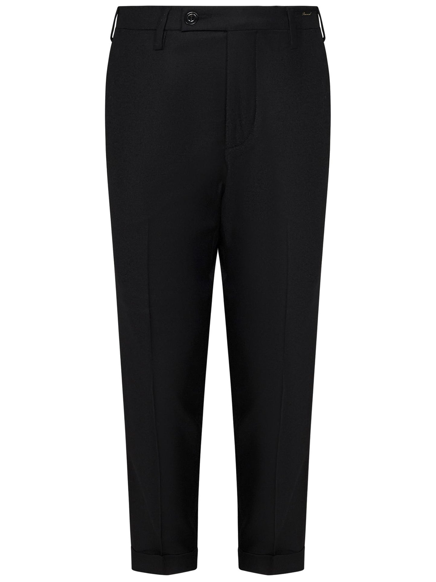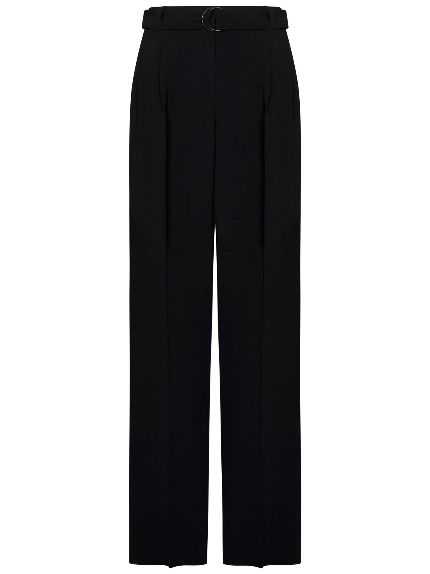 Black Marine trousers in viscose blend with satin waistband and front pleats.