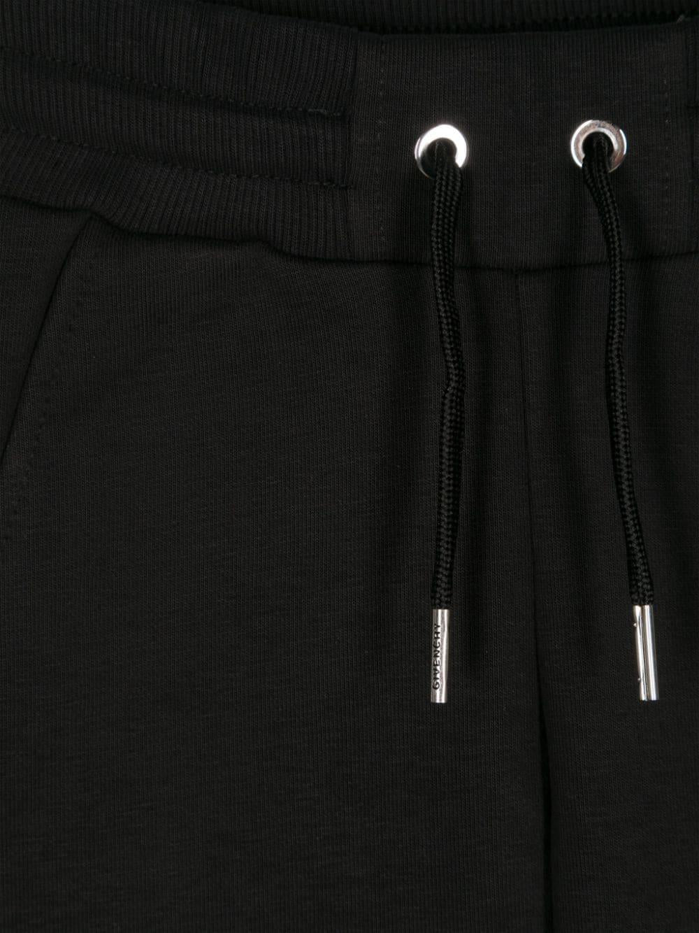 Pantaloni joggers in nylon nero con bande laterali grigie e logo a contrasto.