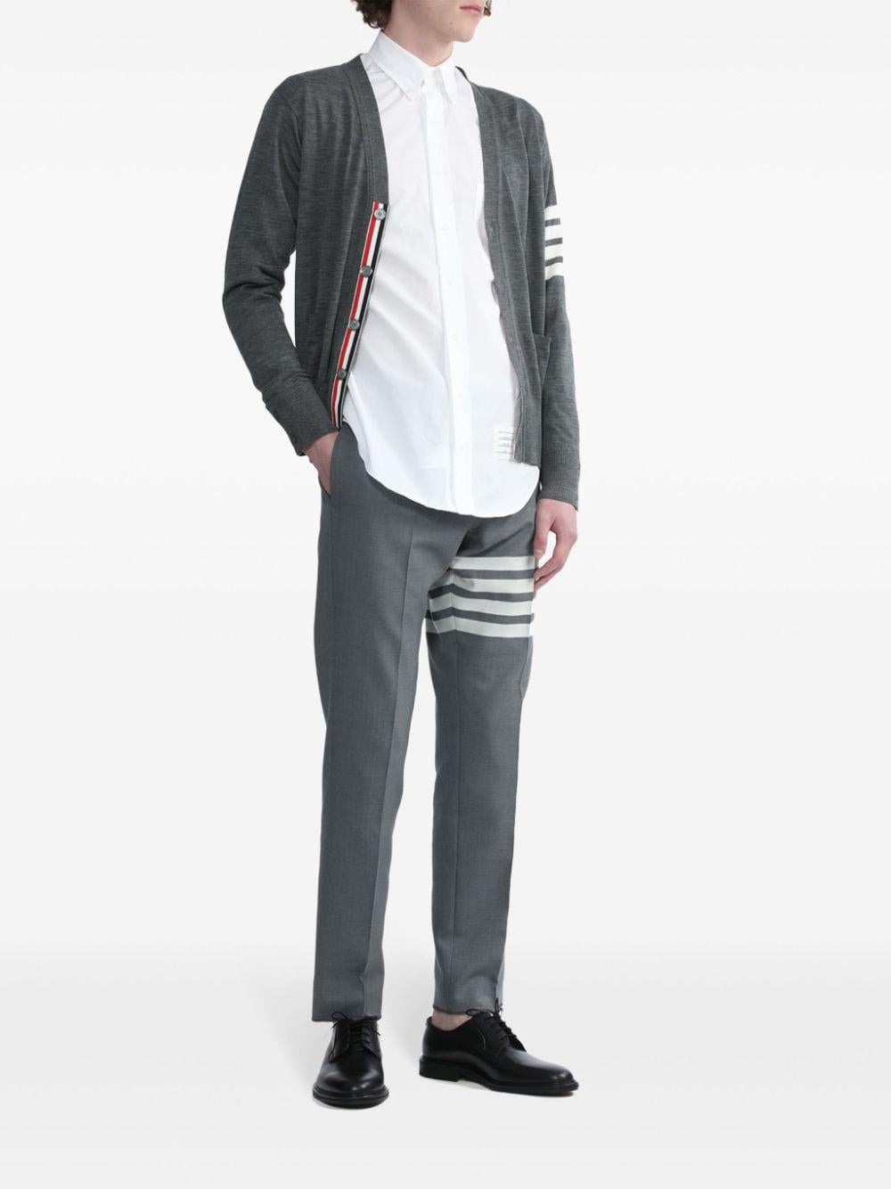 Gray virgin wool knit cardigan with white 4-Bar motif on the sleeve.