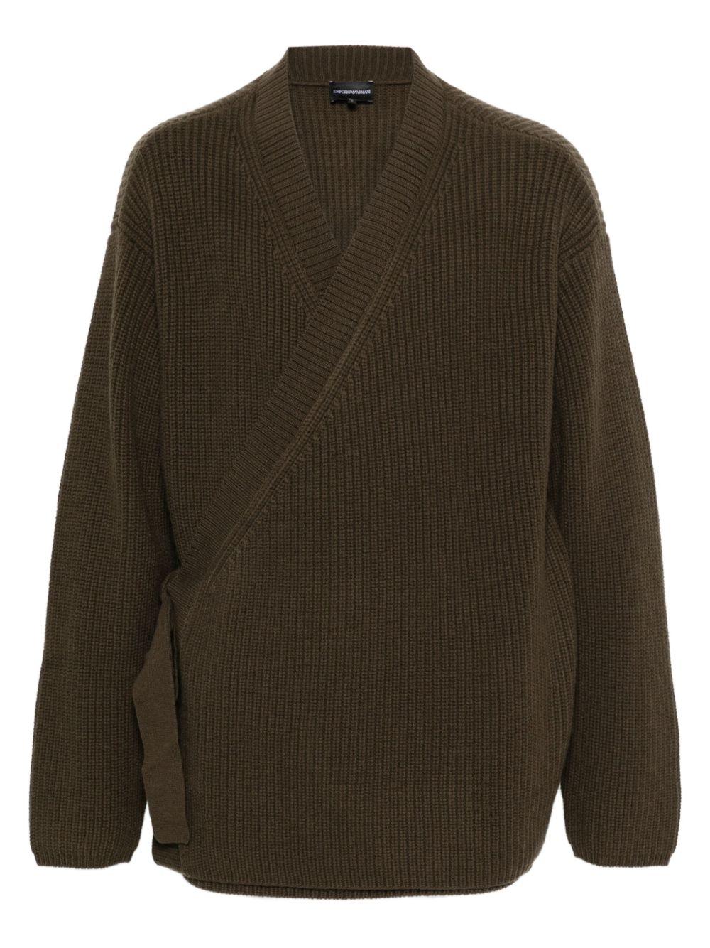 Cardigan stile bomber con zip *ICON in pura lana a punti misti verde militare con badge logo.
