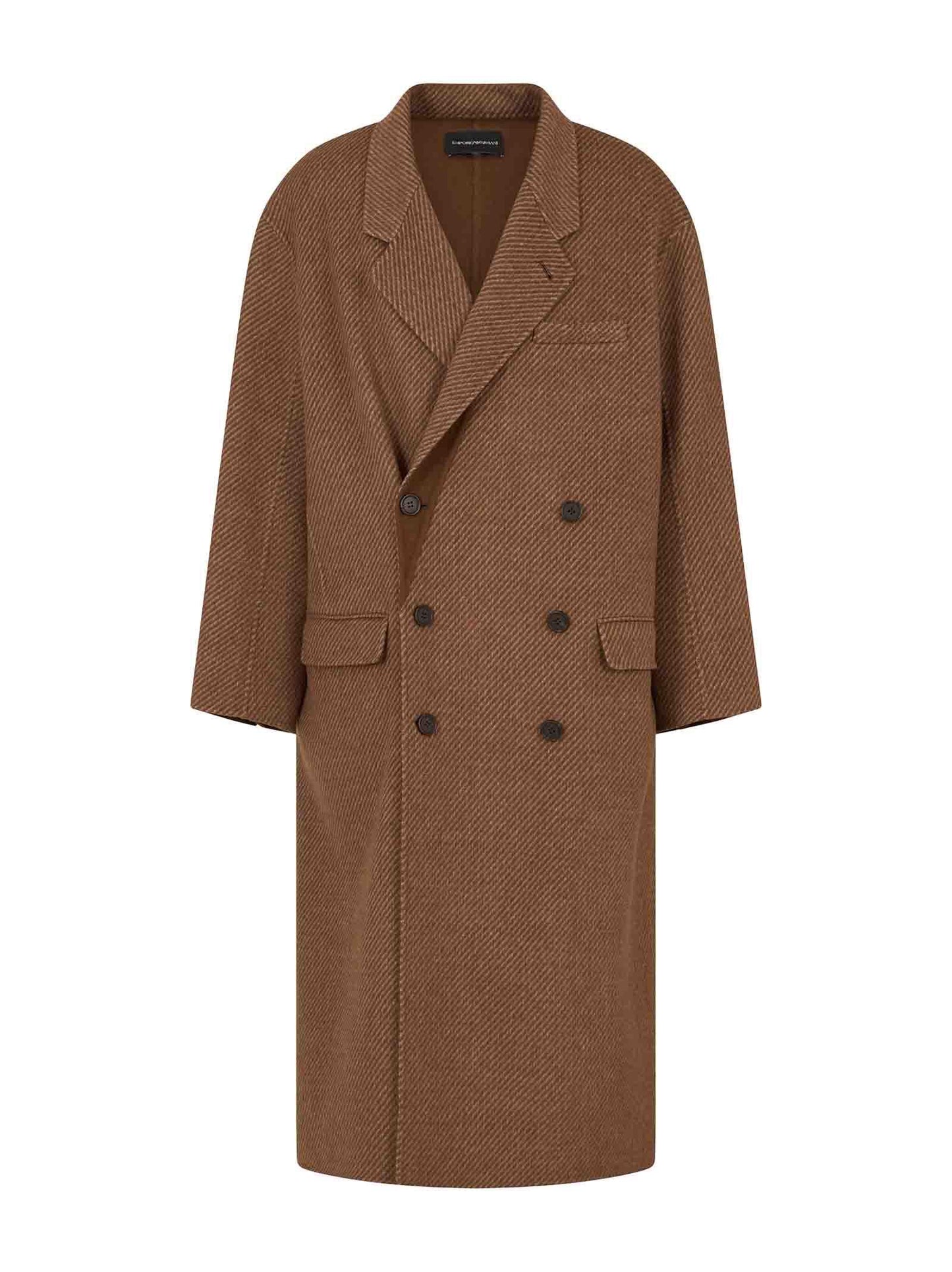 Cardigan in maglia di cashmere color cammello con rever sciallato.
