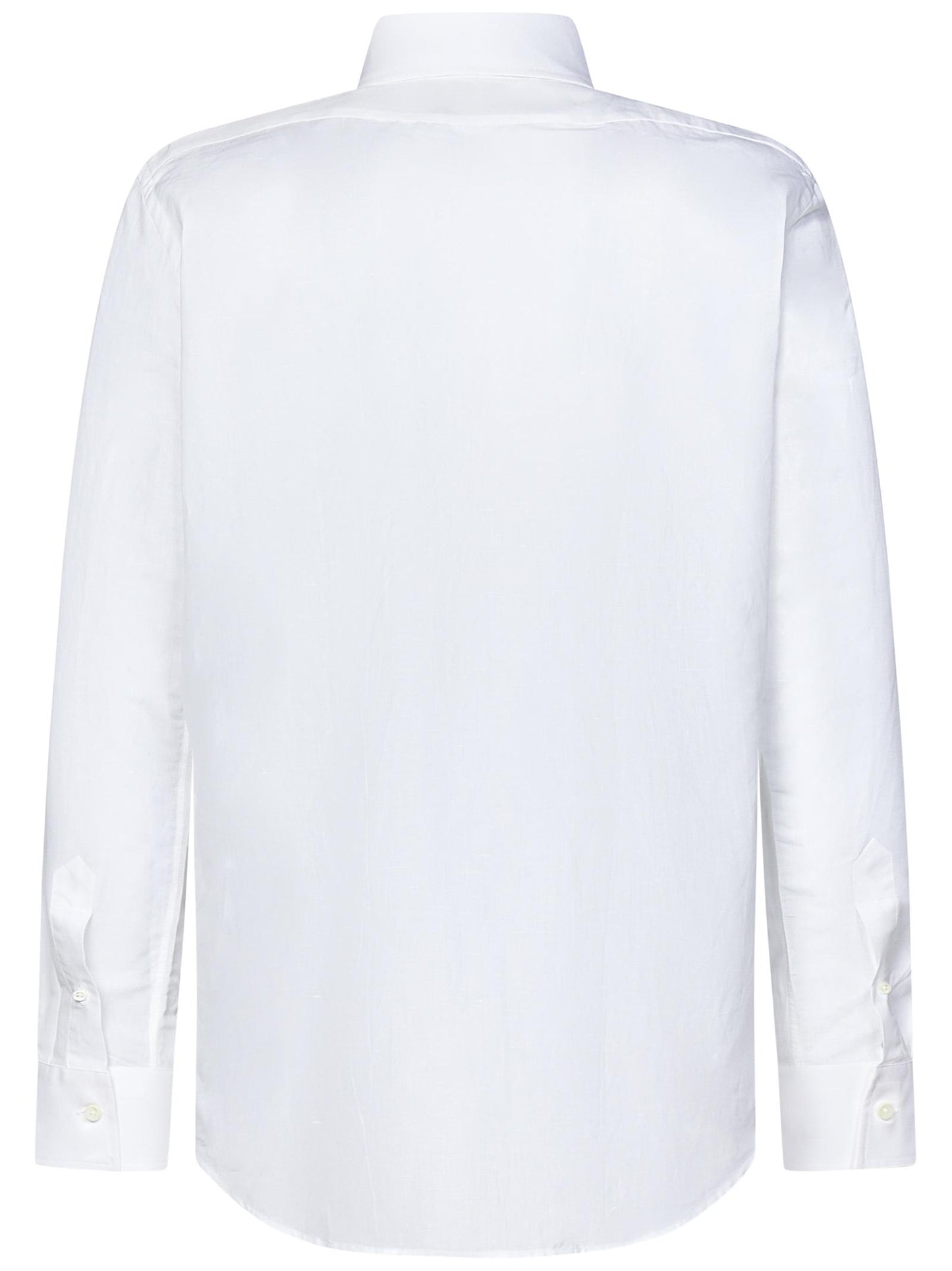 Realizzata interamente a mano, in pregiatissimo tessuto di cotone e lino firmato Ing. Loro Piana & C., la camicia modello David Beckham di Franzese Collection presenta una silhouette classica, disegnata con colletto alla francese, maniche lunghe con polsini con bottone singolo e raffinati bottoni in madreperla.
