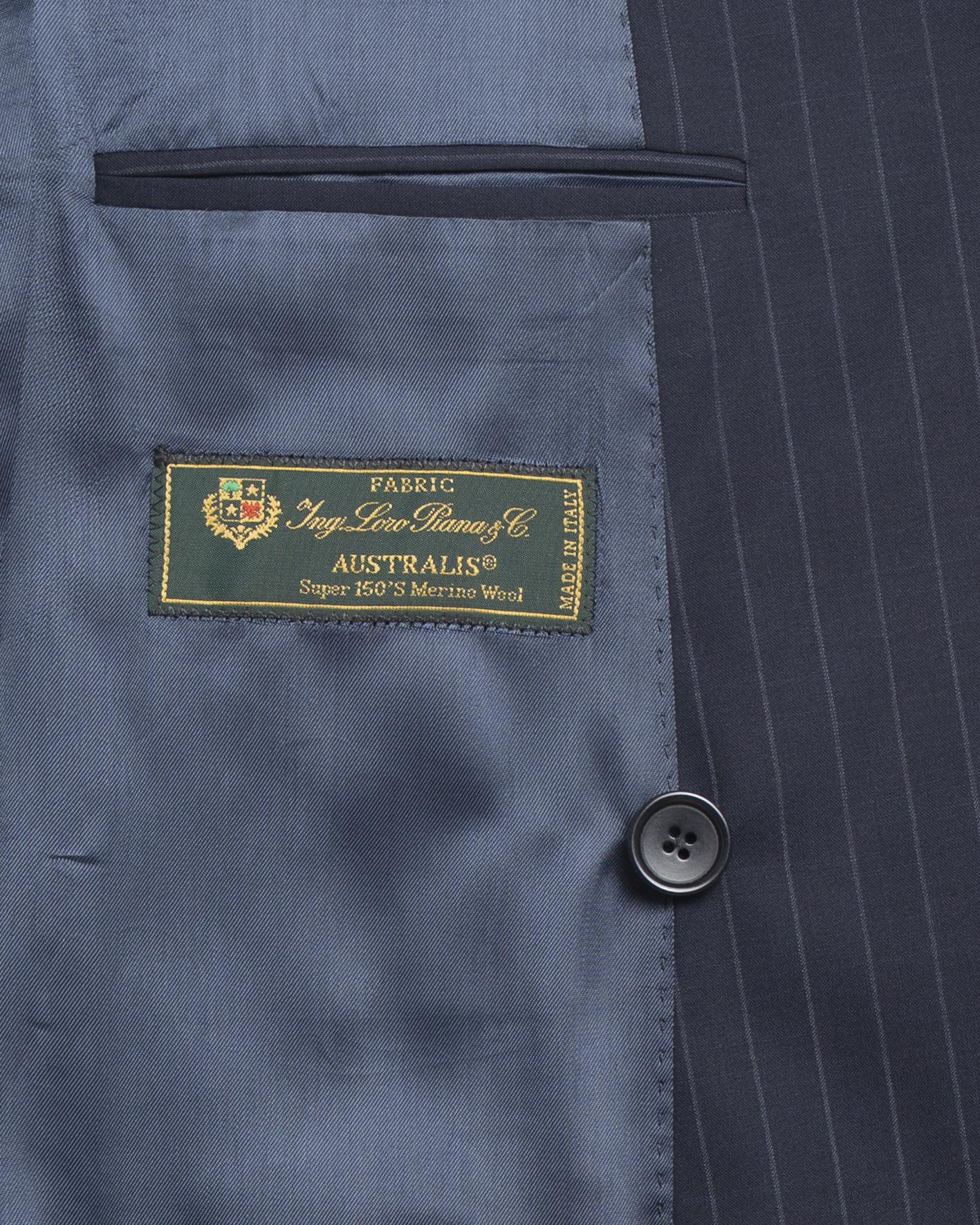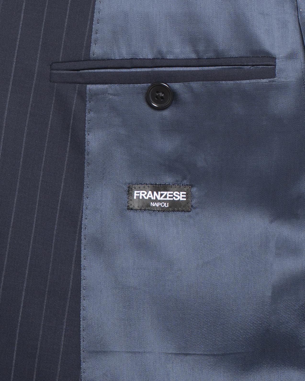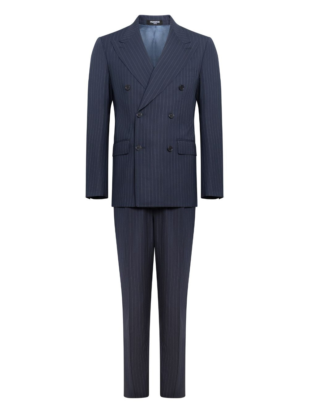 Ode ad una eleganza intramontabile, grazie soprattutto al pregiatissimo tessuto firmato Ing. Loro Piana & C. 150s Australis, l'abito modello Berlusconi proposto da Franzese Napoli vanta una silhouette classica con giacca doppiopetto e pantaloni una pince con cinturini regolabili in vita. La sapiente manifattura artigianale e l'instancabile motivo gessato lo rendono un vero fiore all'occhiello nel vostro guardaroba.