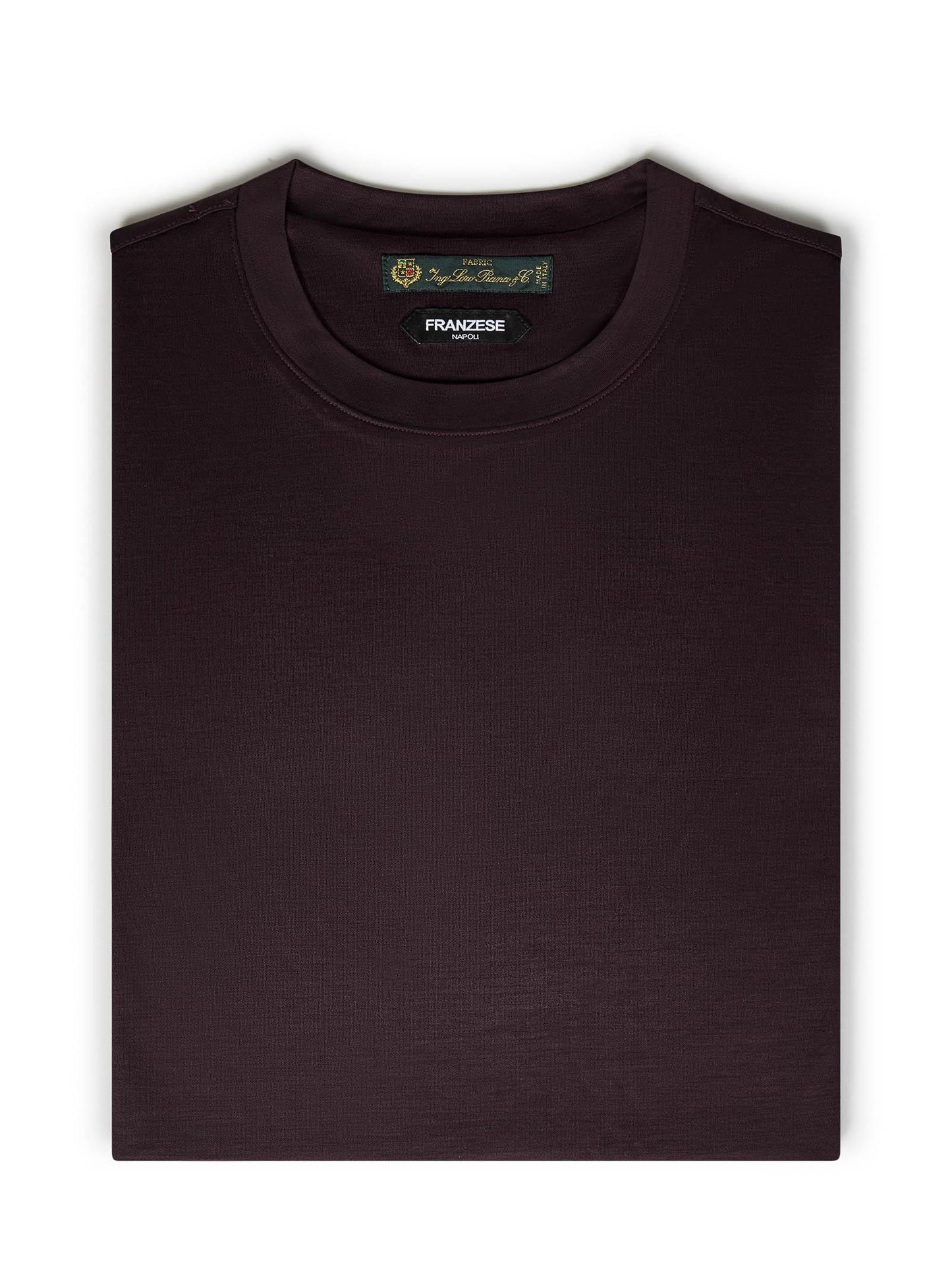 Comfort and luxury for the Capital model T-shirt by Franzese Collection. In the finest soft wool australis aqua fabric by Ing. Loro Piana & C, entirely hand-sewn and made in Italy, it features an essential silhouette with a crew neck and short sleeves, perfect for casual but always elegant daily wear.
