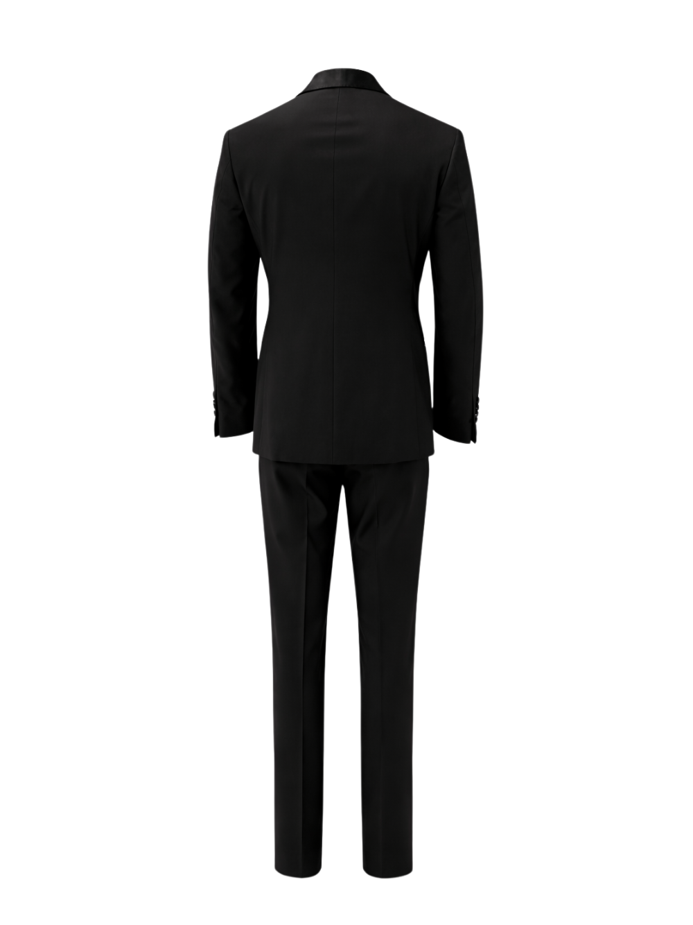 - Pantaloni: Chiusura frontale nascosta, banda in satin alla vita con cinturini laterali, tasche laterali, bande laterali in satin, tasche posteriori a filetto con piping e bottone in satin