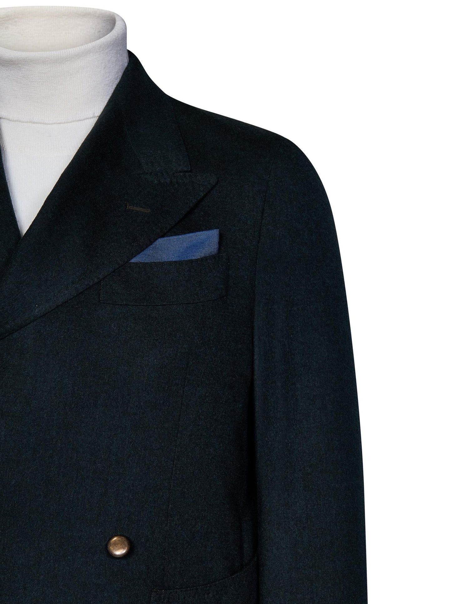 Preziosa pochette dandy chic in denim Ing.Loro Piana & C., interamente Made in Italy con orlo rifinito a mano ed etichetta logo cucita, perfetta per le occasioni speciali.