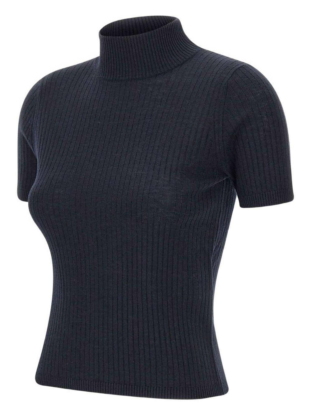 - Collo dolcevita a costine; maniche corte