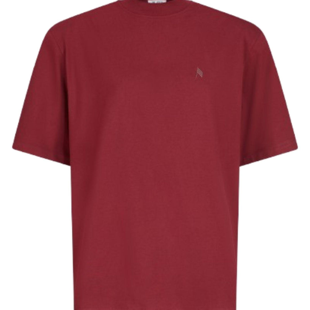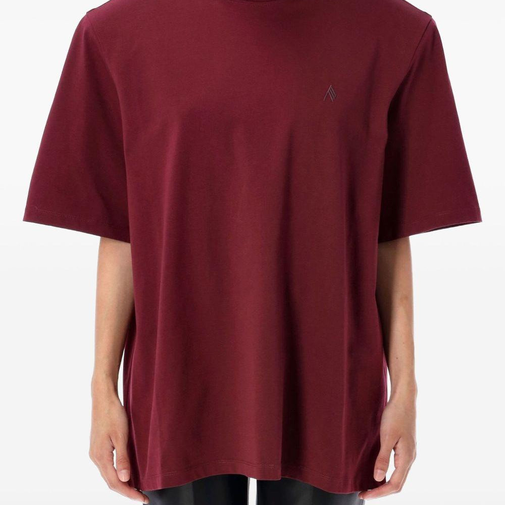 T-shirt oversize in cotone bordeaux con spalline imbottite e ricamo logo sul petto.