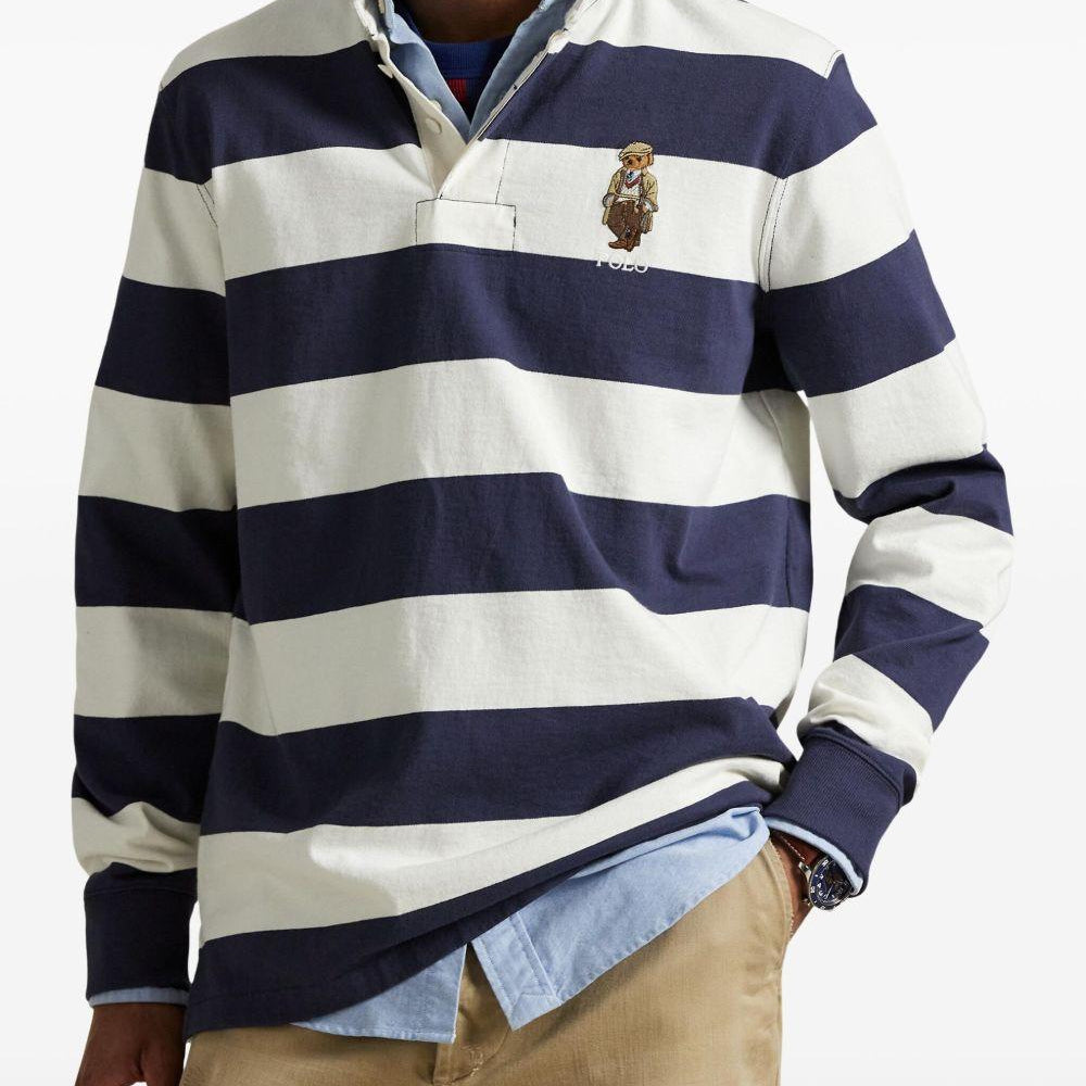 Polo a maniche lunghe in cotone nero con patch logo Bear sul petto.