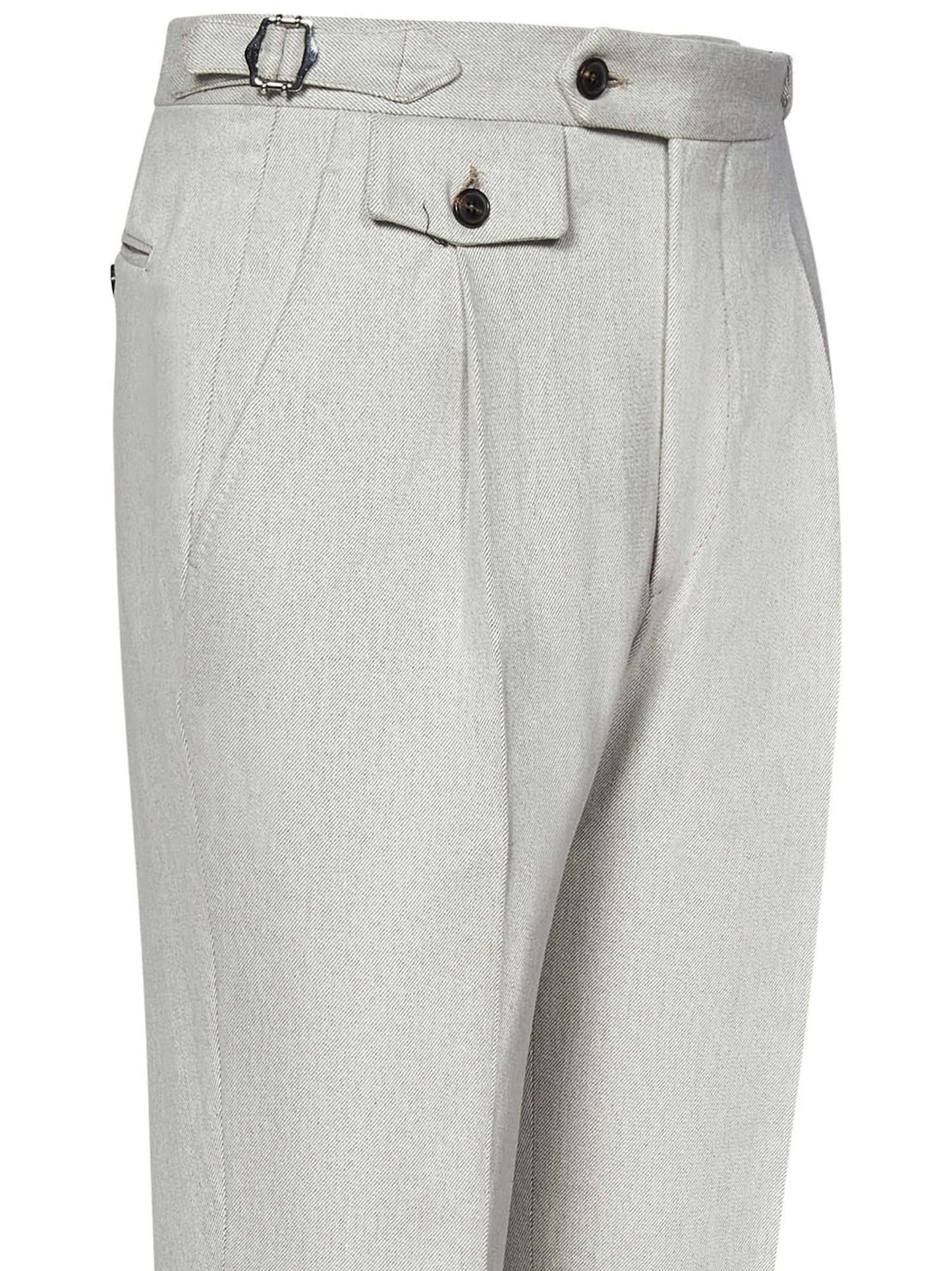 Interamente cuciti a mano, in pregiatissimo tessuto Australis Denim Super 150s Merino Wool firmato Ing. Loro Piana & C, i pantaloni modello Stefano De Martino di Franzese Collection sono disegnati con una silhouette elegantissima con cinturini laterali in vita e pince frontale singola. Classy e raffinati, sono perfetti in combinazione con blazer e mocassini.