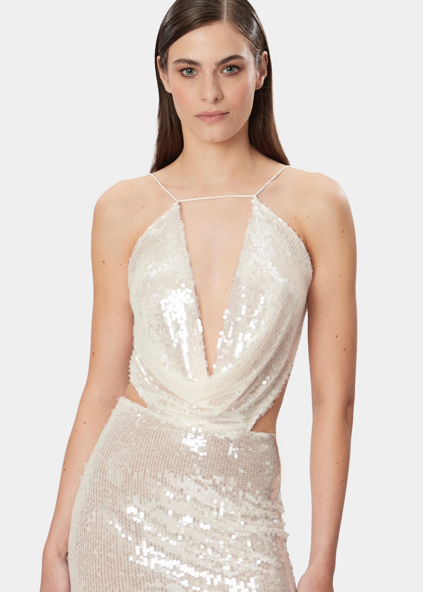 - Dettagli cut-out laterali in vita; schiena scoperta