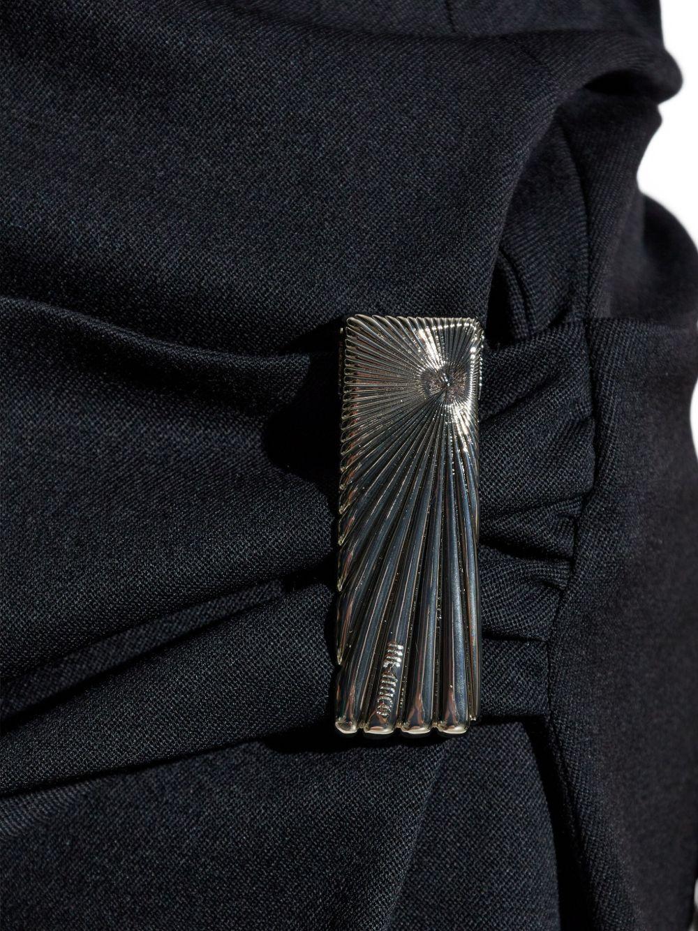 - Drappeggio in vita con spilla con logo inciso in metallo lavorato sul lato
