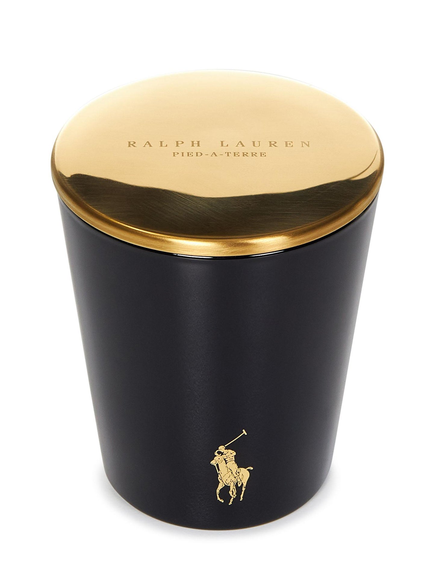 - Coperchio in acciaio inossidabile color oro con scritta "Ralph Lauren Pied-à-Terre" incisa sulla parte superiore; Può fungere da base del contenitore