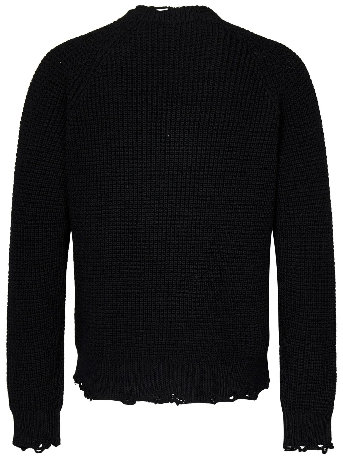 - Girocollo, orlo e polsi a costine con dettagli sdruciti