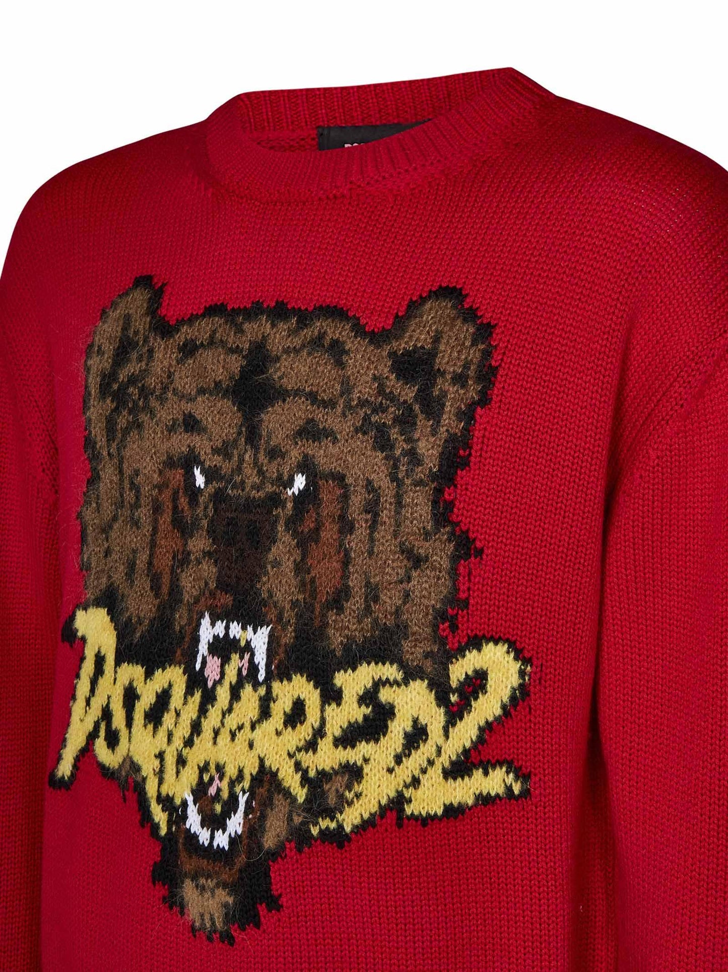 - Testa d'orso e logo lettering in jacquard a contrasto sul davanti