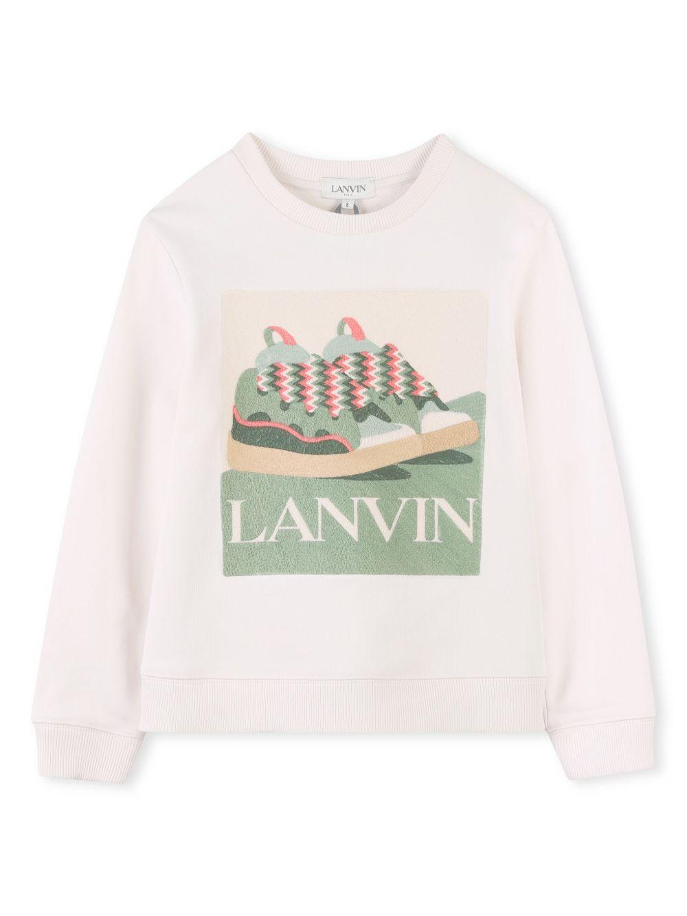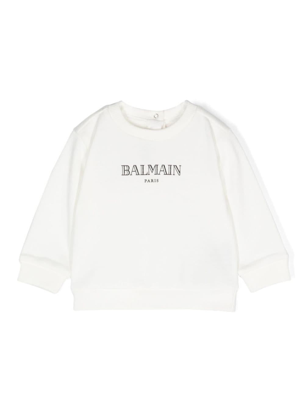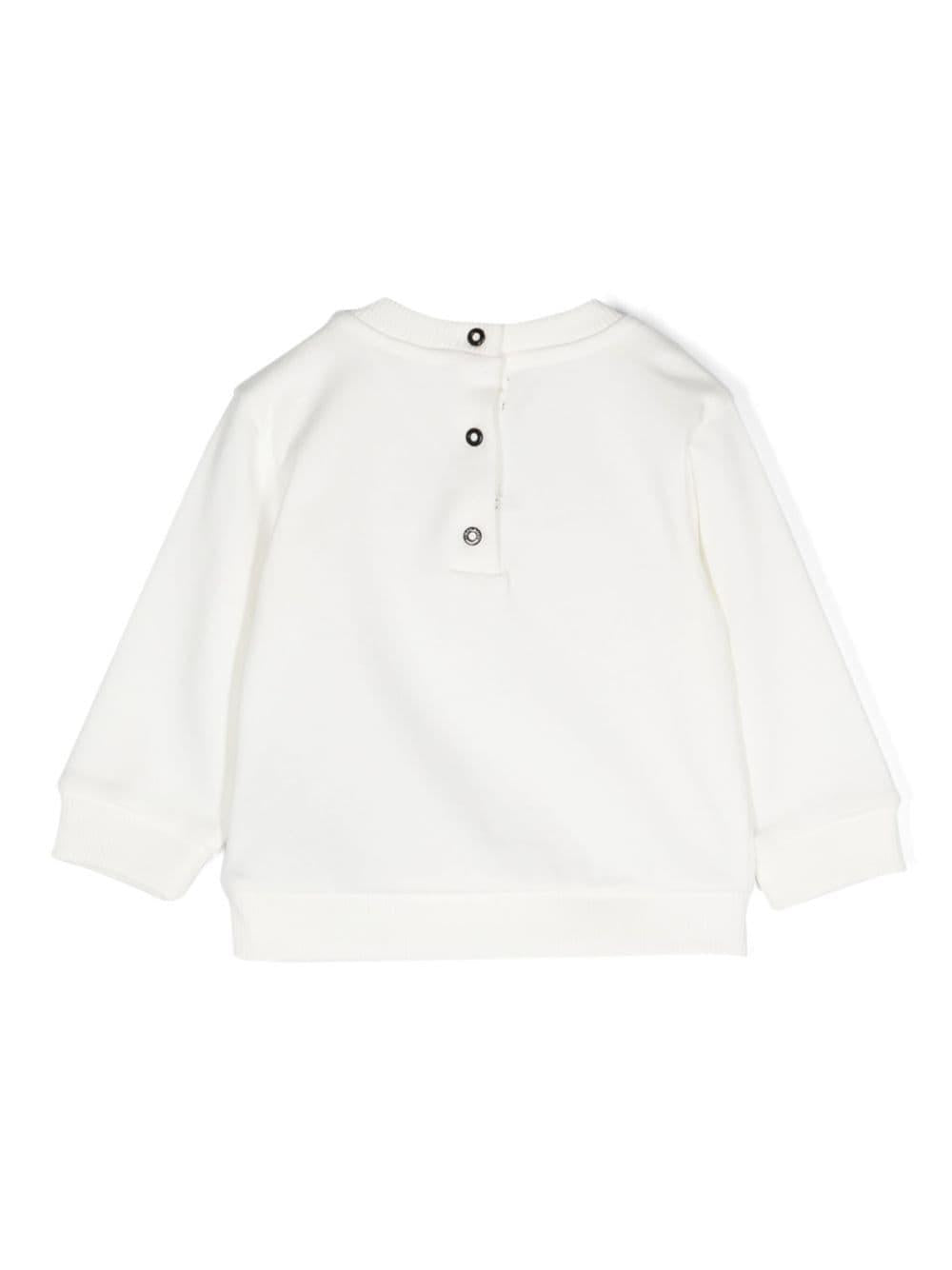 Felpa per bambino in cotone bianco con stampa logo multicolore sul davanti e motivo Diag sulle maniche.