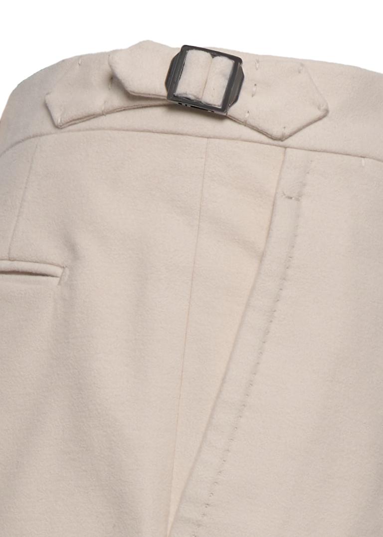 Perfetto blend di eleganza, comodità e versatilità, i pantaloni modello Stefano De Martino di Franzese Napoli vantano una silhouette interamente realizzata a mano in pregiatissimo cotone liscio mano pesca di Ing. Loro Piana & C. La pince frontale singola ed i cinturini laterali in vita, completano il modello con un tocco classy.