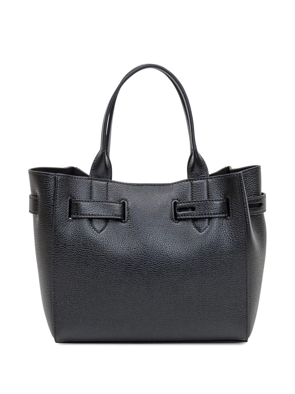 - Doppio manico superiore in pelle; tracolla regolabile e rimovibile in pelle