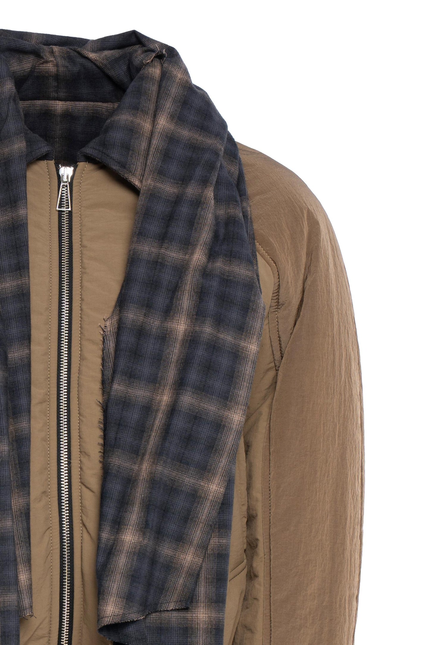 - Tasche laterali; Sciarpa non removibile in flanella di cotone a quadri