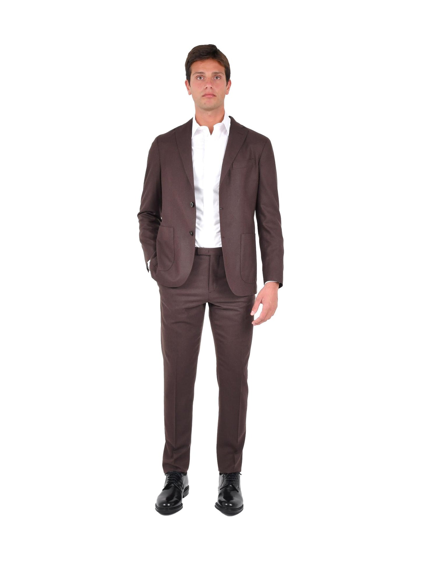 - Giacca monopetto: chiusura frontale con bottoni, rever classico, polsi con bottoni, due tasche applicate sui lati, taschino a filetto sul petto, tasche a filetto interne, doppio spacco sul retro